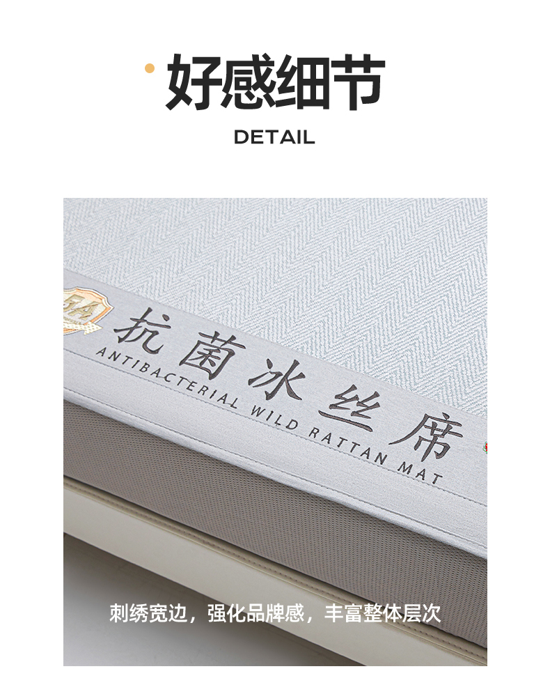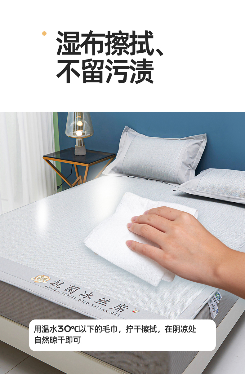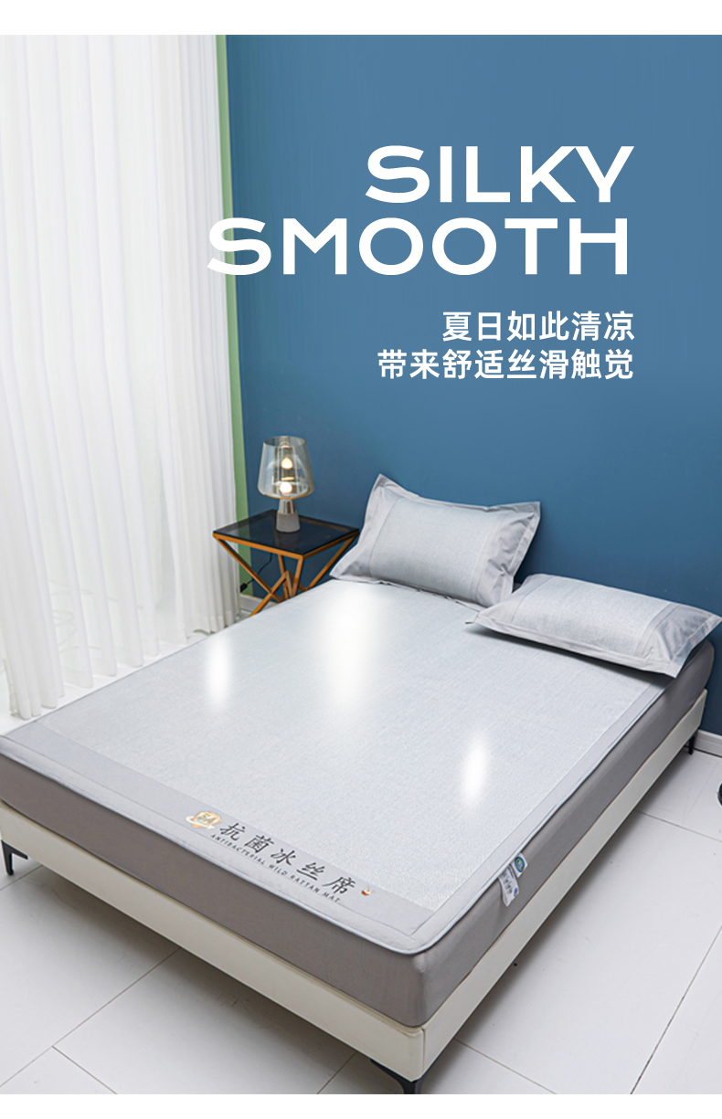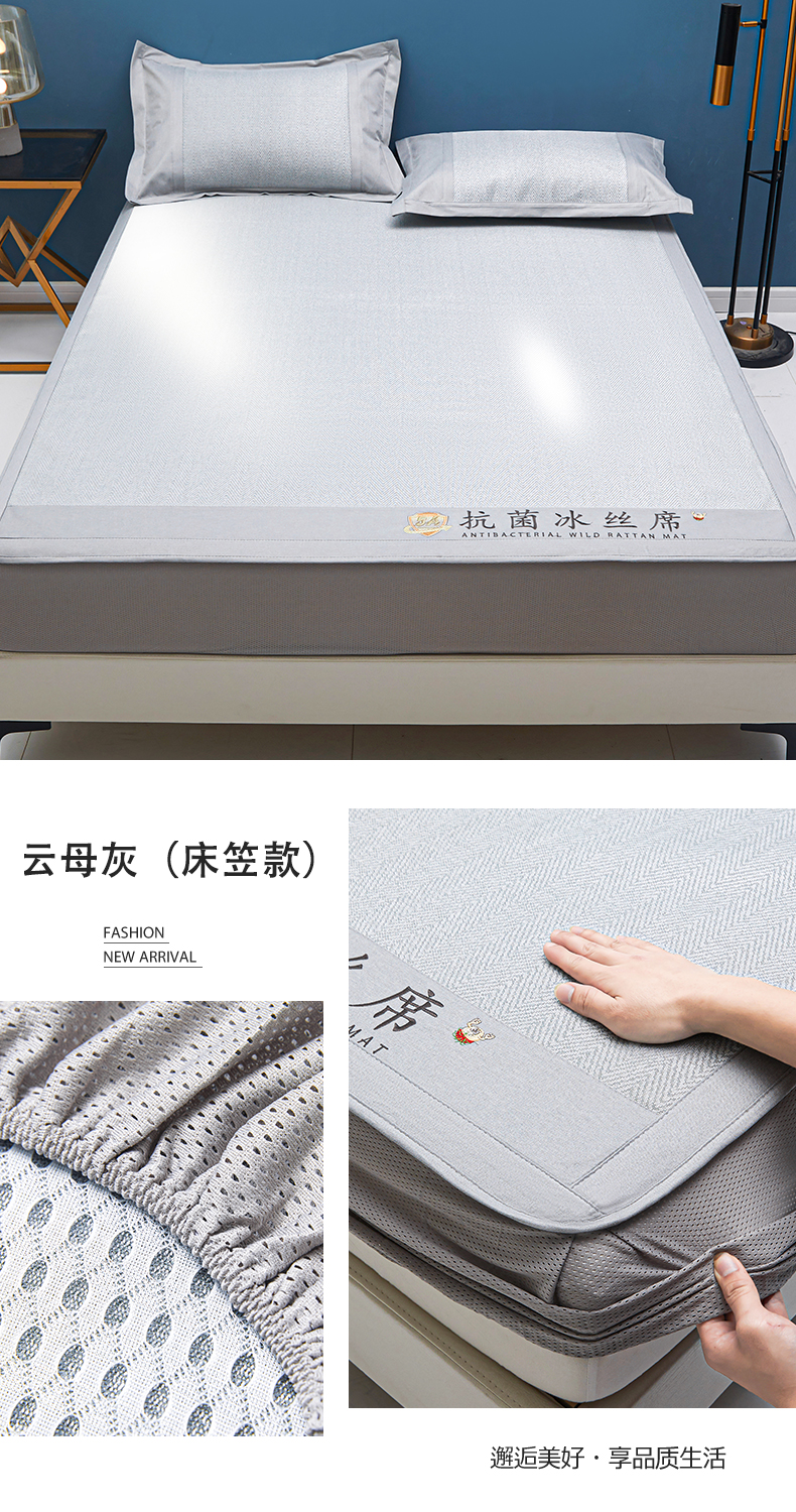 商品名称:鑫姿席业 2025新款5A抗菌冰丝凉席系列 云母灰(床笠款)