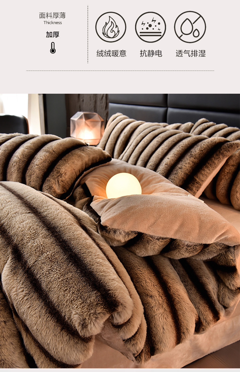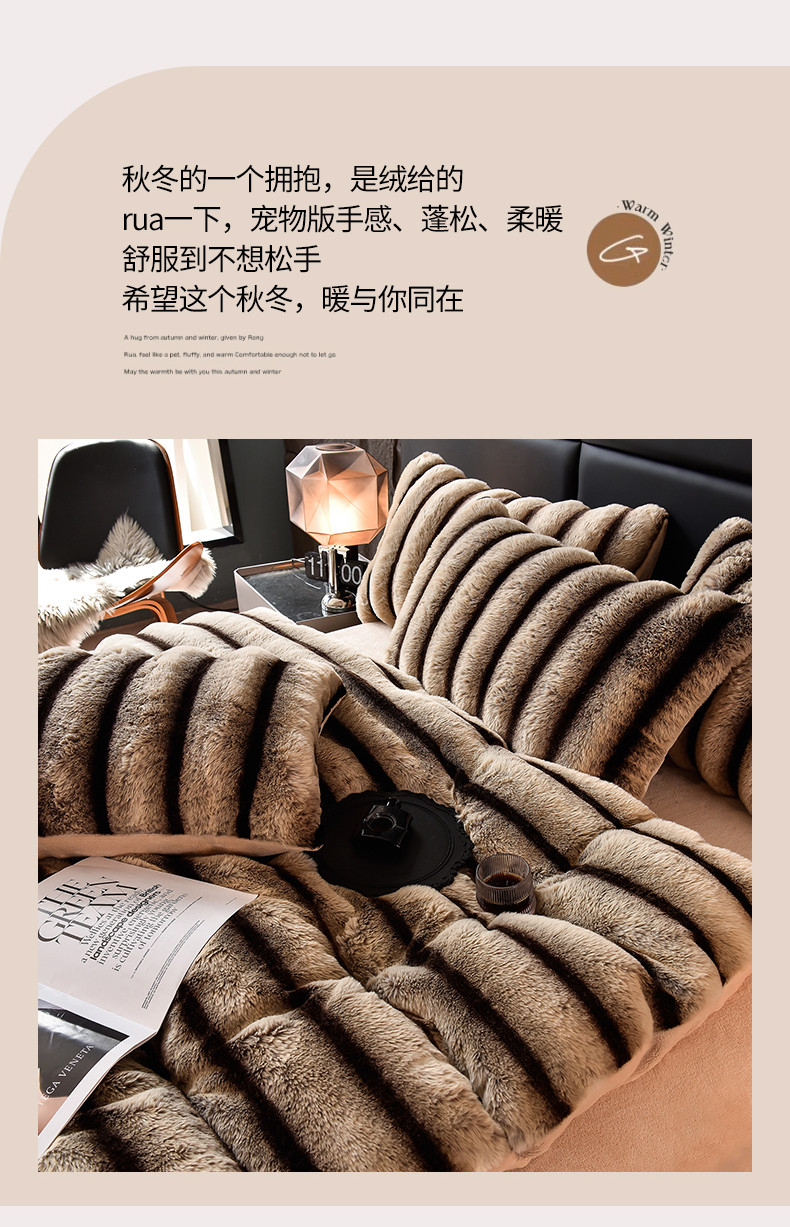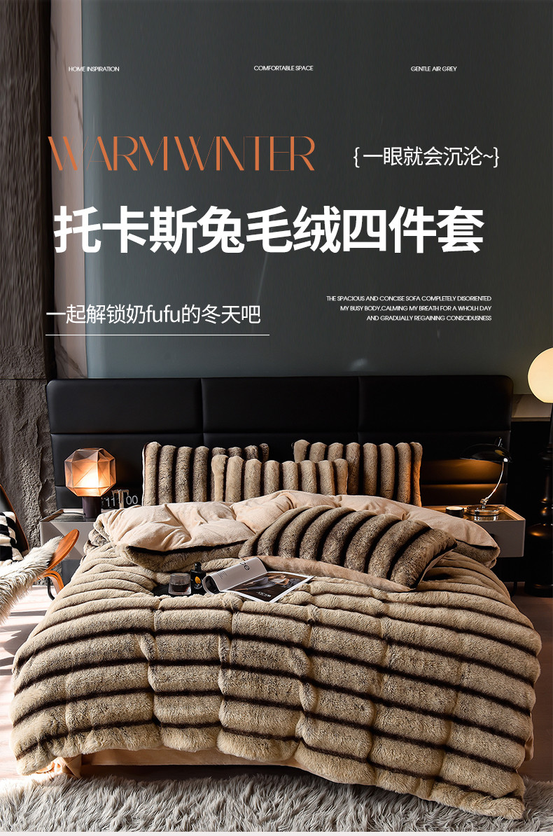 (总)同田家纺 2023新款托卡斯兔毛绒四件套,卡其,森林绿,紫灰,墨绿,棕灰,甜粉,雪灰,柔雾粉