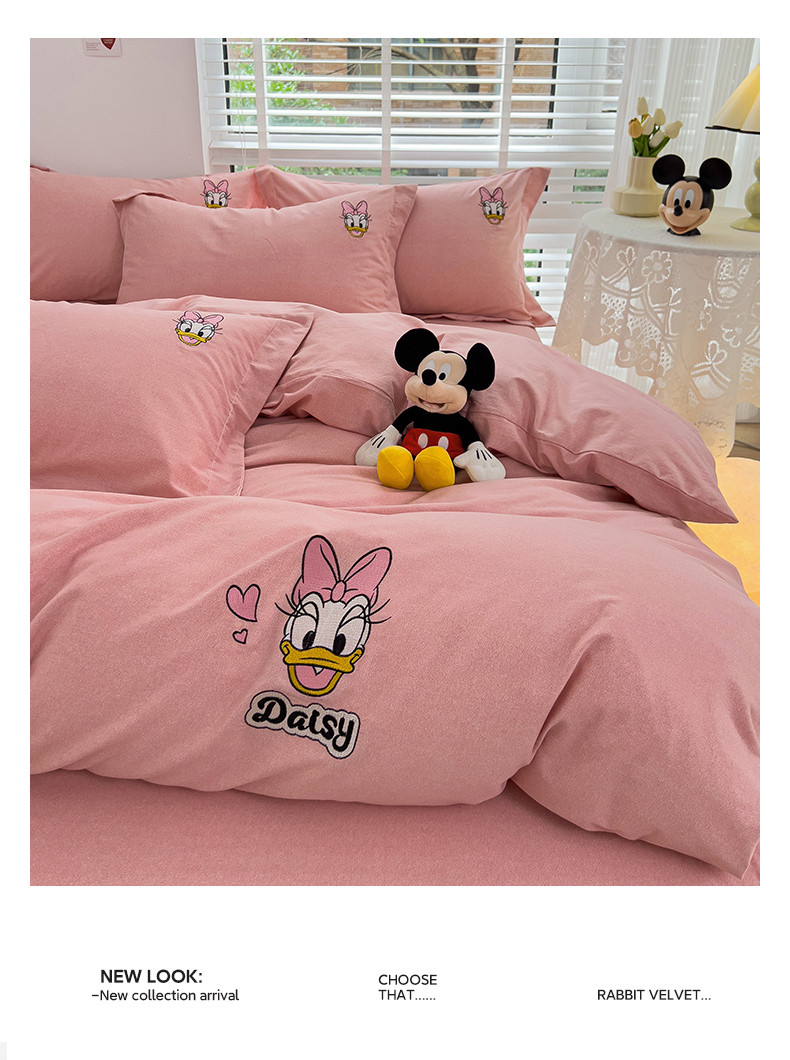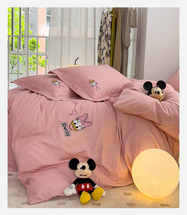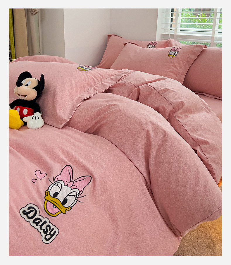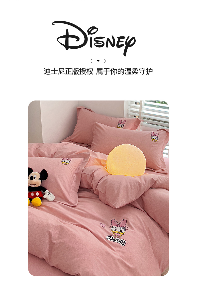 当前位置: 91家纺网 > 商品网购 > 床品套件 > 四件套 > 全棉普通四件套 > 慕尚家纺 2025新款迪士尼全棉磨毛刺绣系列四件套 黛西粉