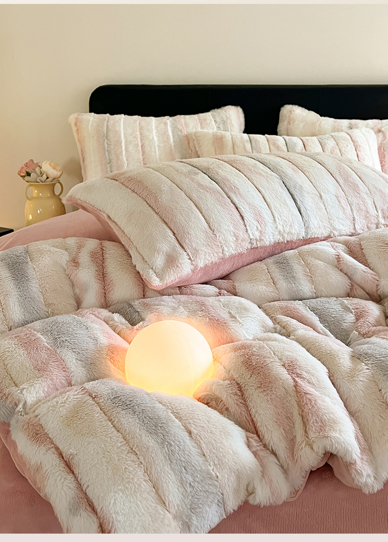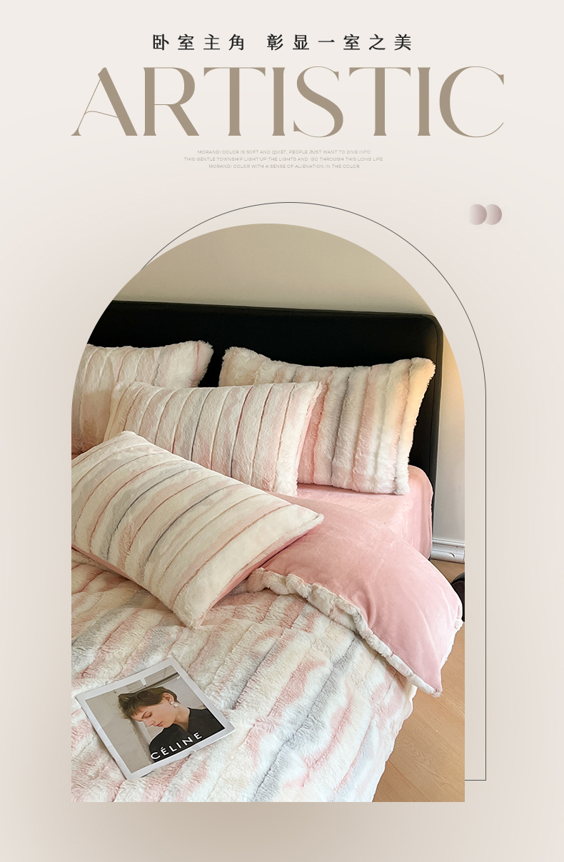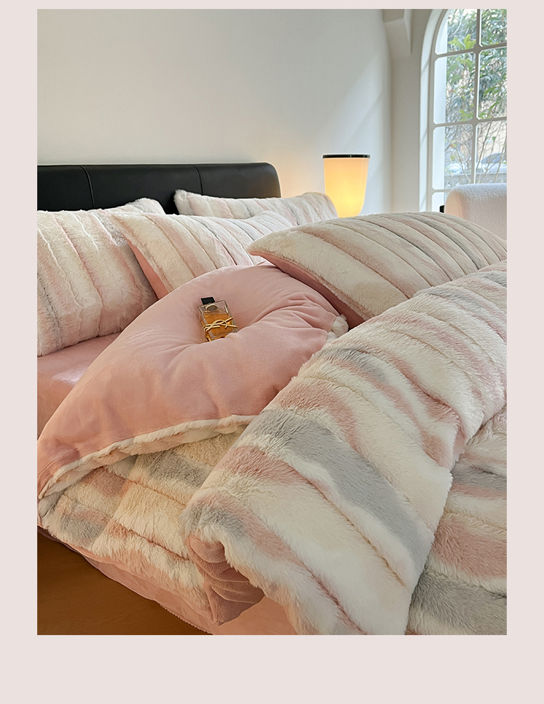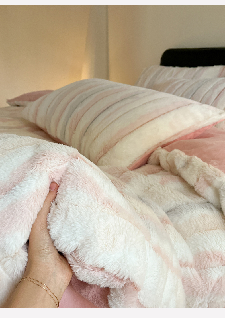 罗优家纺 2024新款兔兔绒四件套-时光系列 时光-粉白条