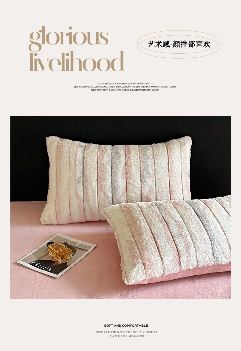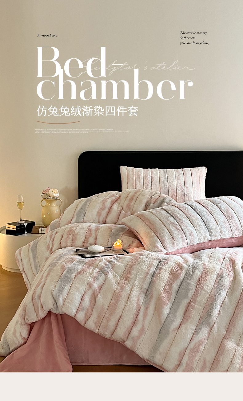 (总)罗优家纺 2025新款柔暖皱幔款暖绒四件套,浅粉,浅灰,浅蓝,浅杏