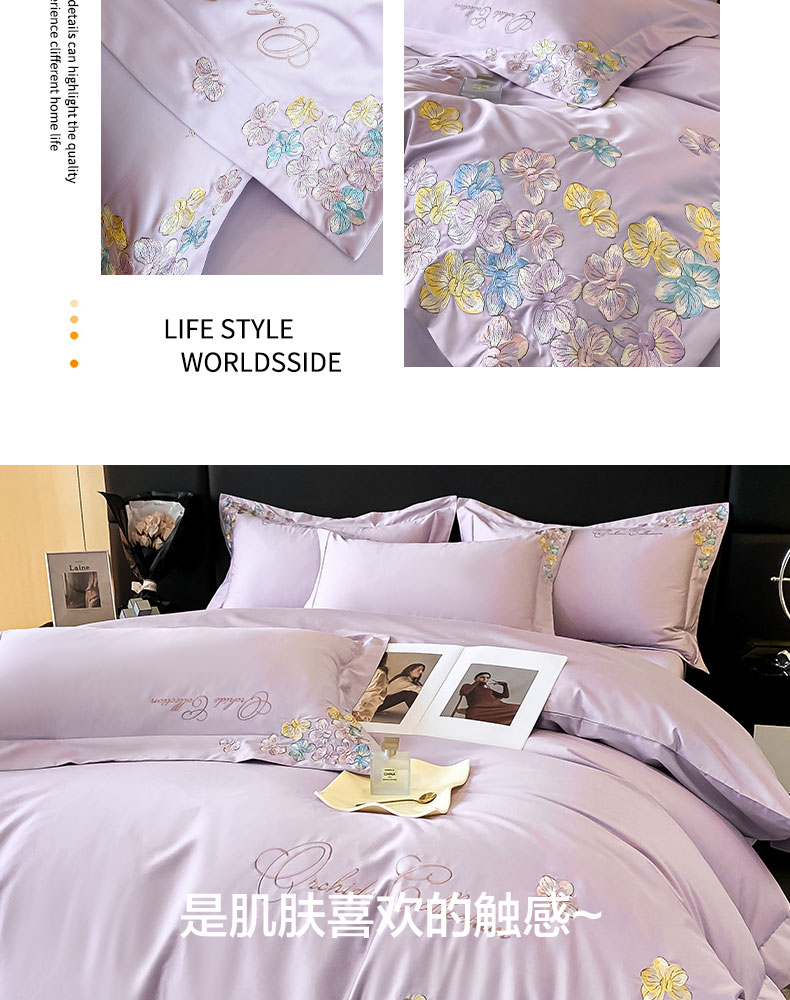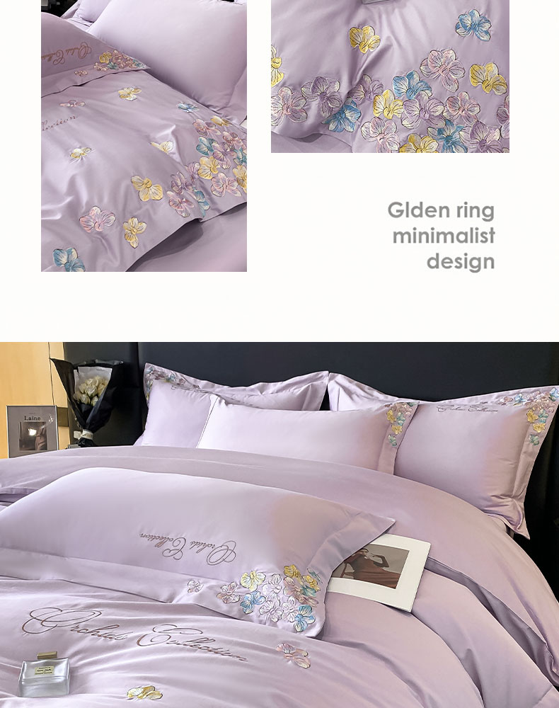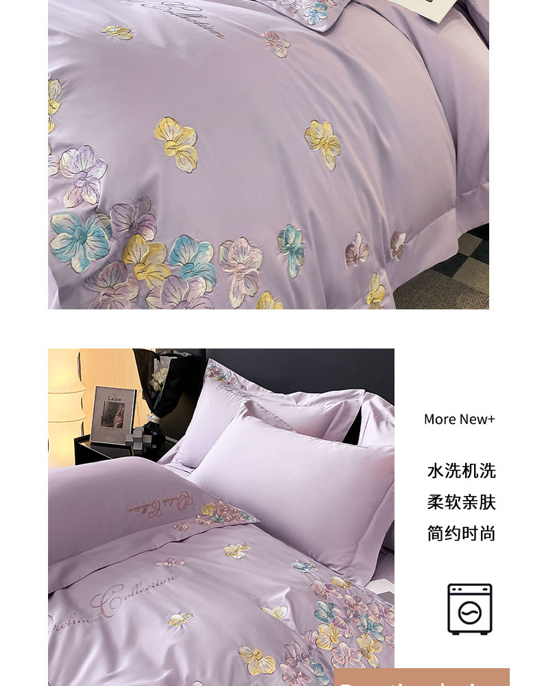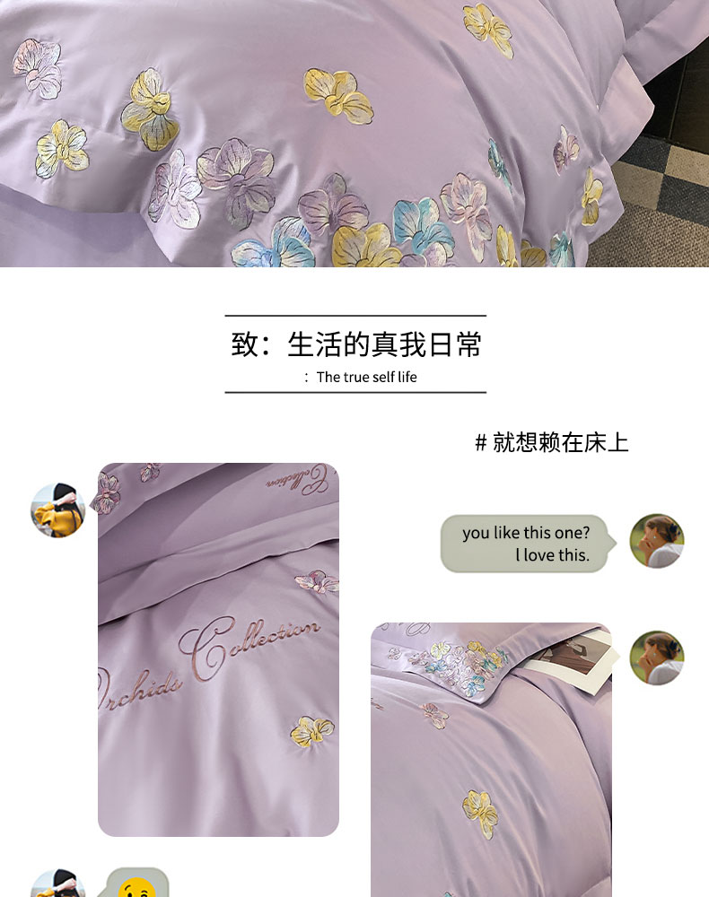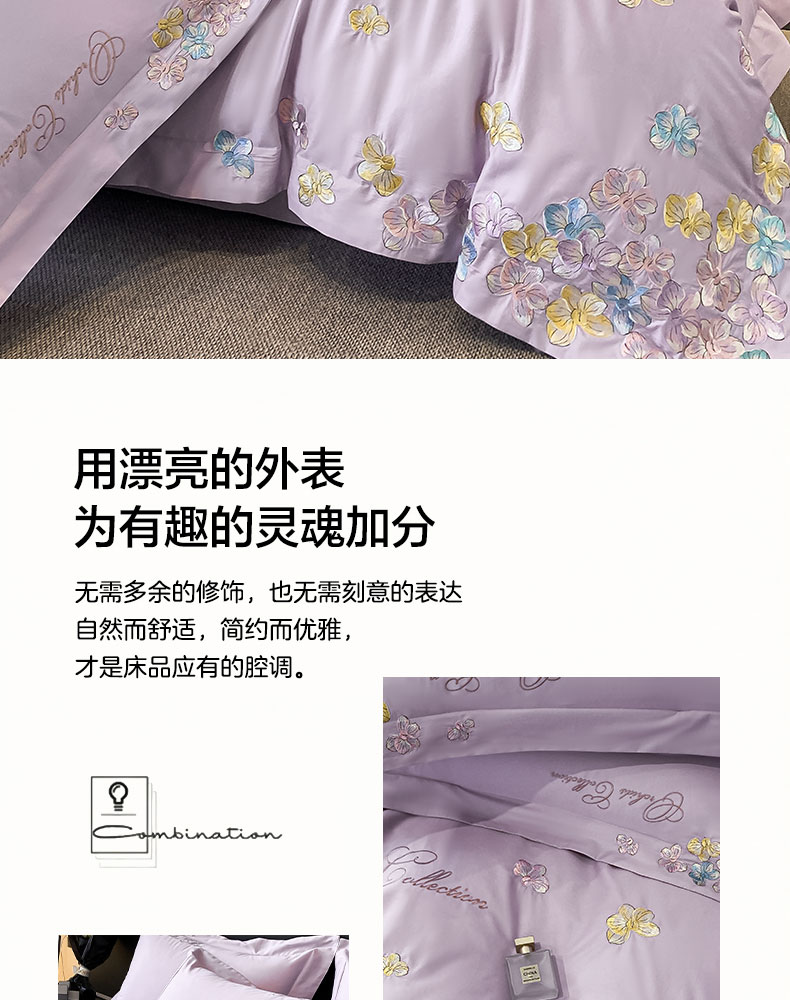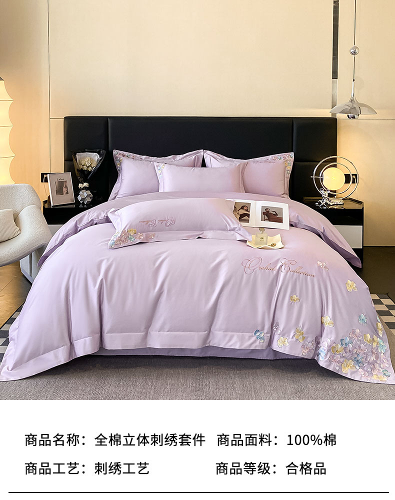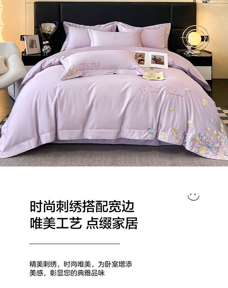 当前位置: 91家纺网 > 商品网购 > 床品套件 > 四件套 > 全棉普通四件套 > 丞音家纺 A类100全棉刺绣长绒棉花卉绣花纯棉四件套 蝶恋花-香芋紫