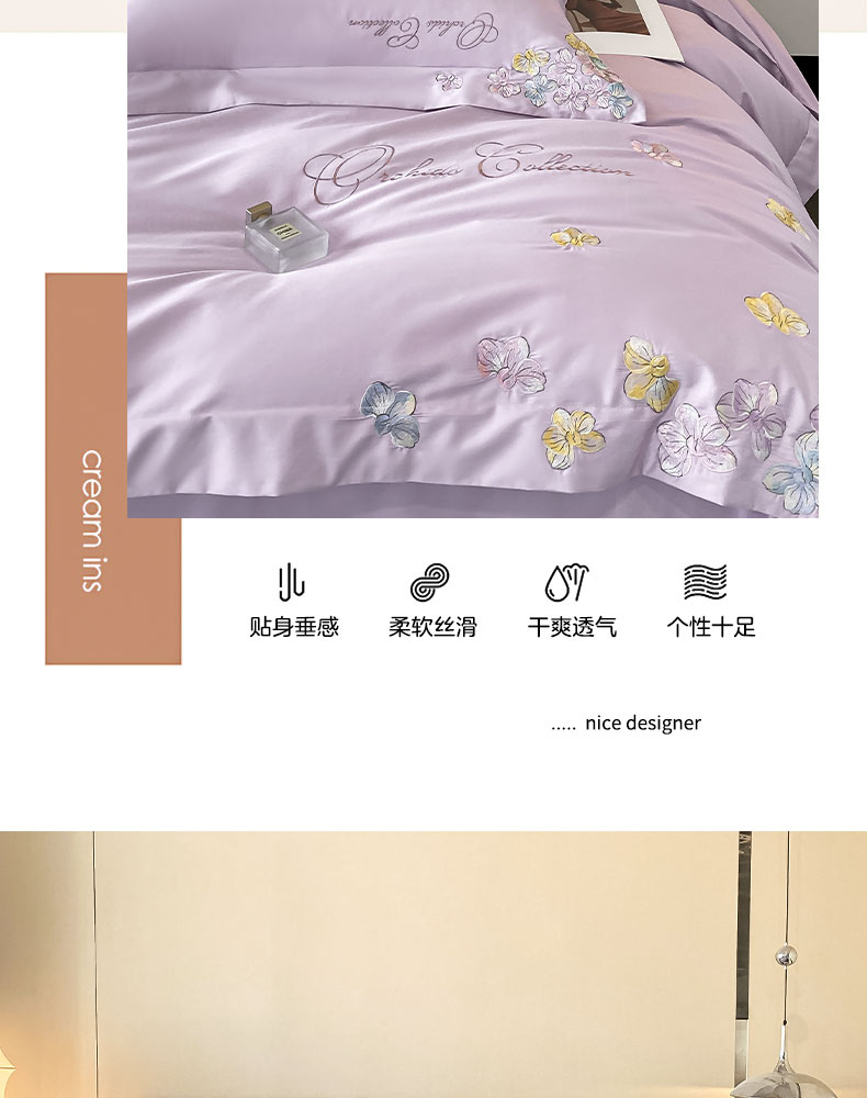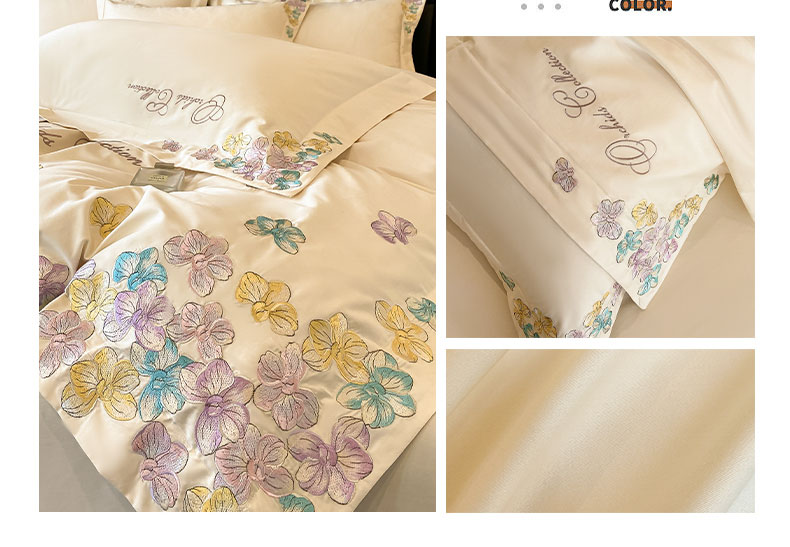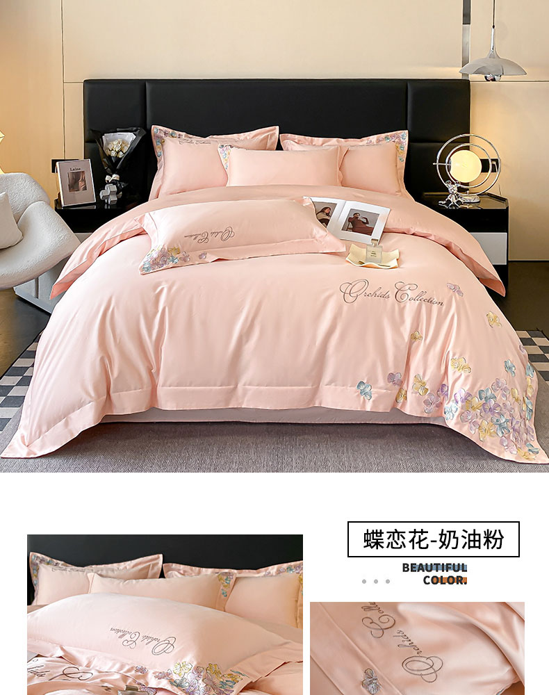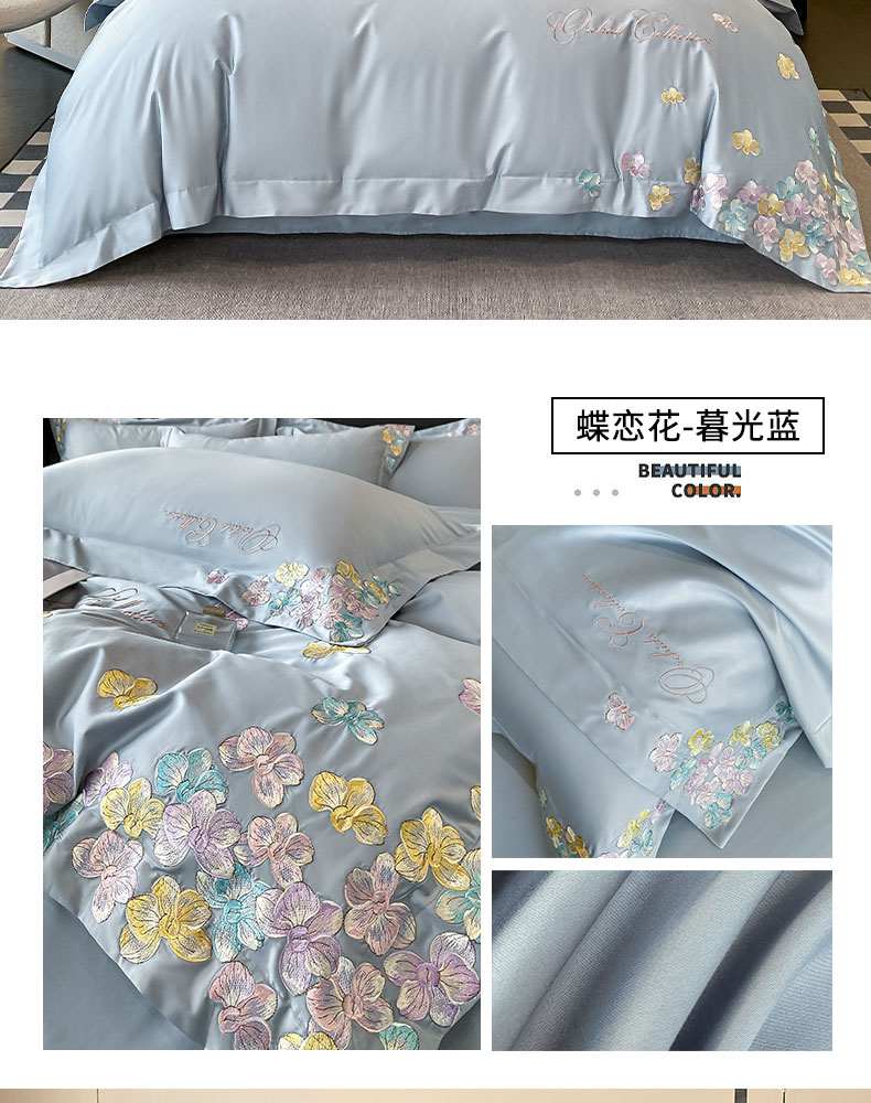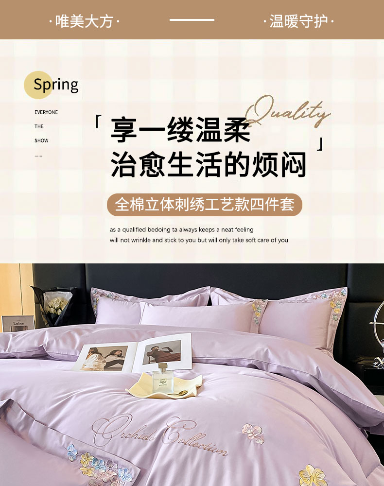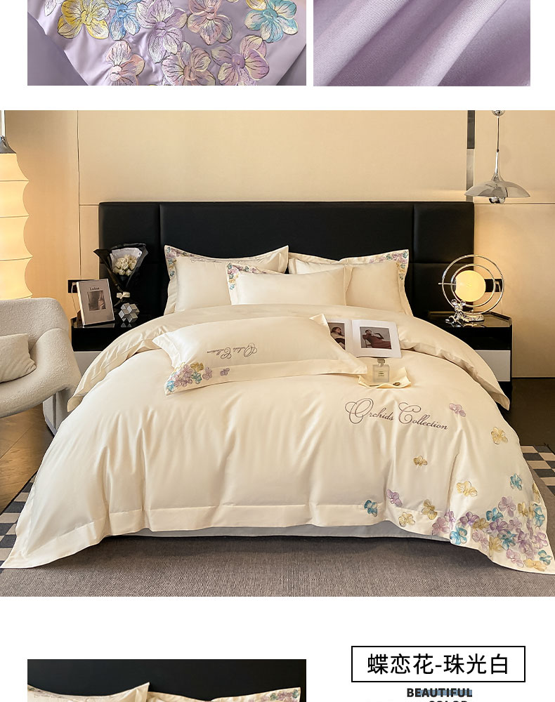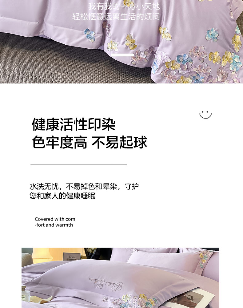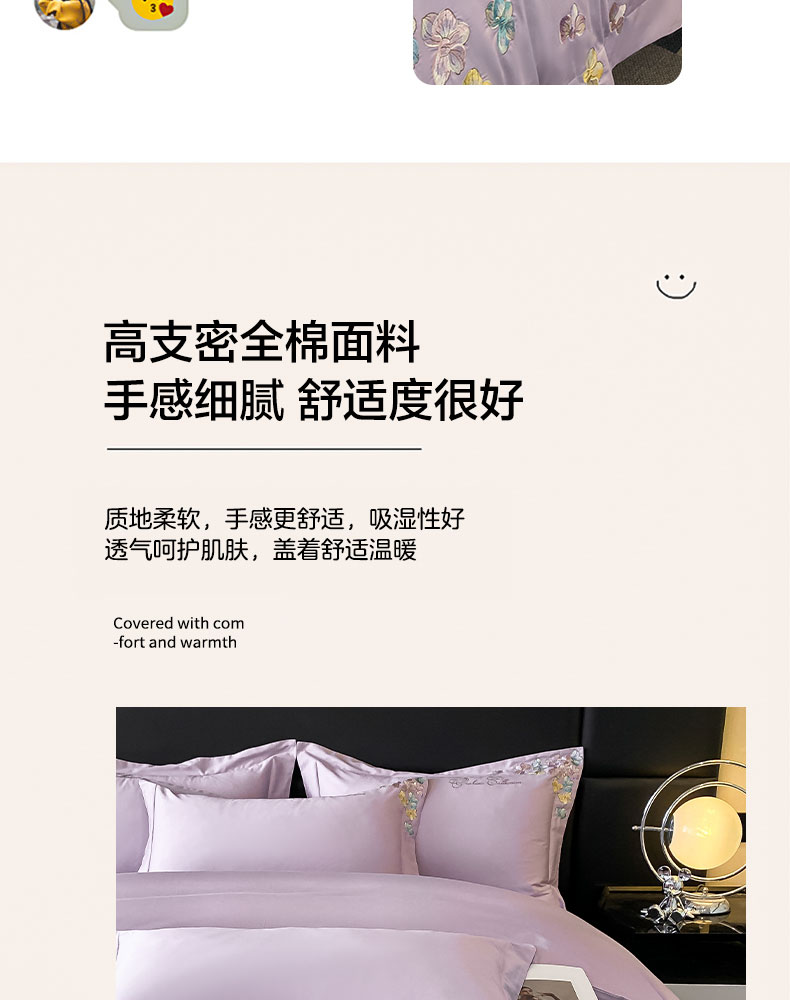 当前位置: 91家纺网 > 商品网购 > 床品套件 > 四件套 > 全棉普通四件套 > 丞音家纺 A类100全棉刺绣长绒棉花卉绣花纯棉四件套 蝶恋花-香芋紫