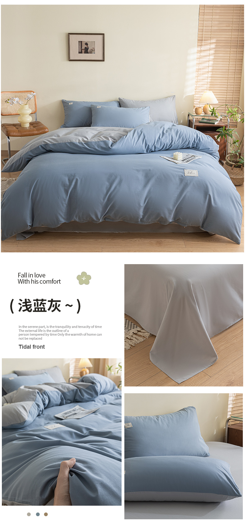 当前位置: 91家纺网 > 商品网购 > 床品套件 > 四件套 > 全棉普通四件套 > ab家纺 2024新款40支全棉双拼四件套 浅蓝灰