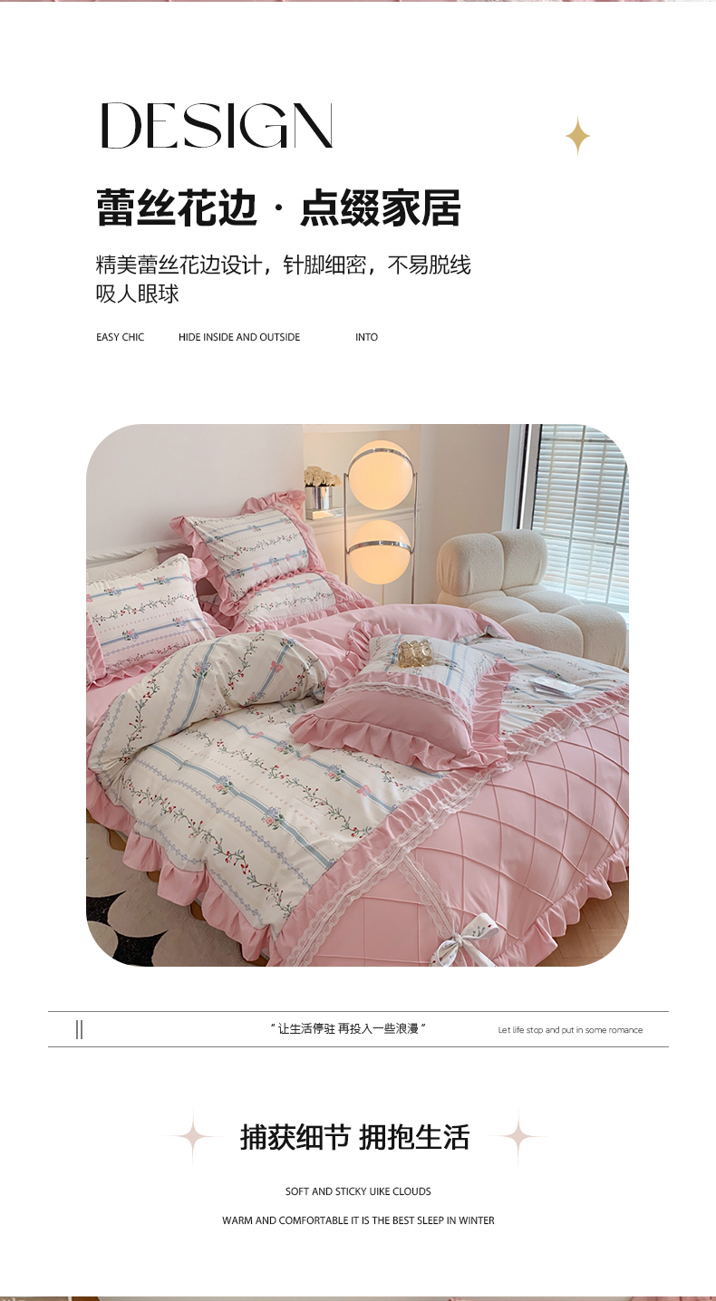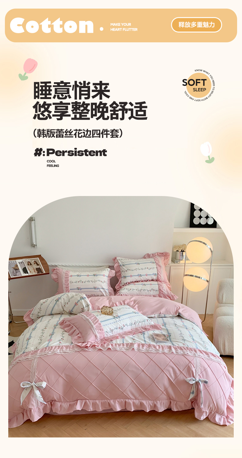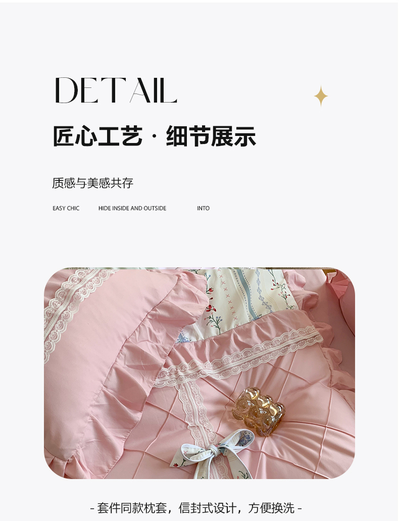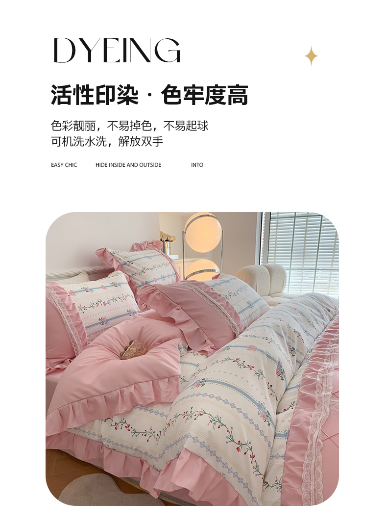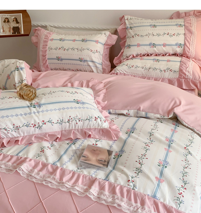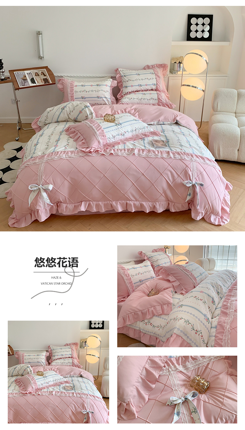 商品名称:吾欢心 2025新款蝴蝶结款韩版蕾丝花边四件套 悠悠花语