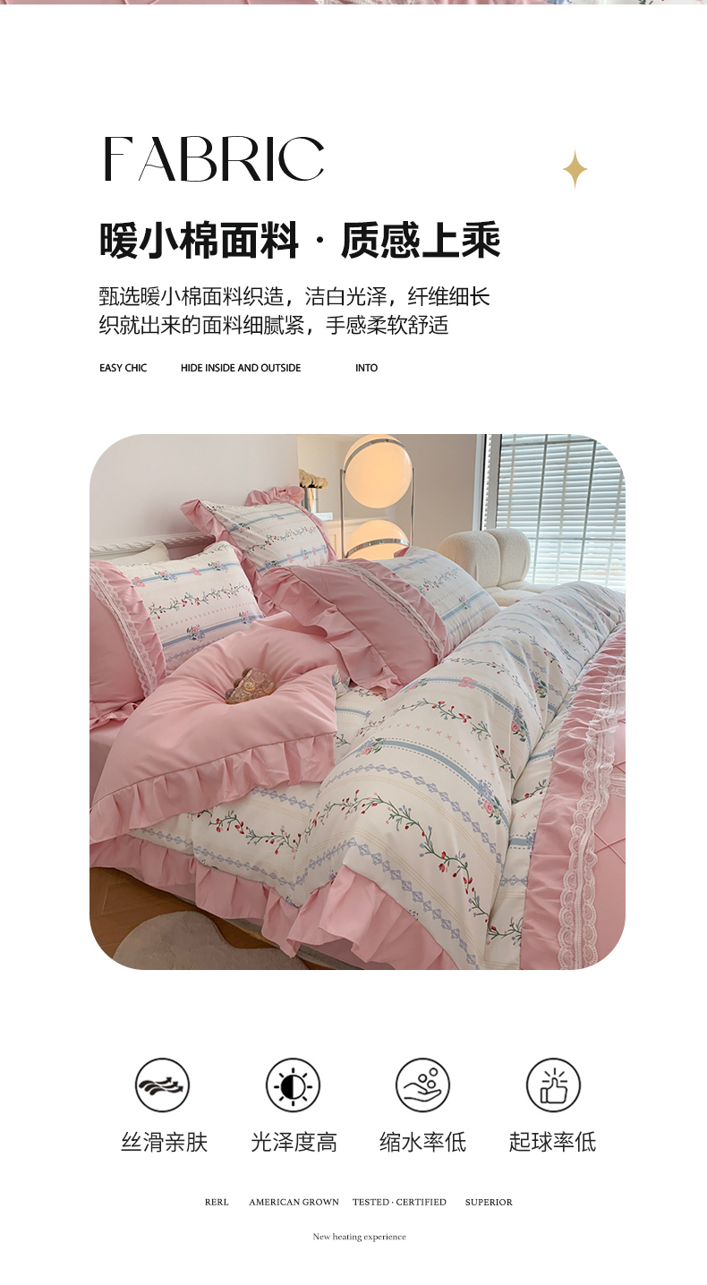 (总)吾欢心 2026秋冬新款公主风加厚高克重全消光婴儿绒四件套爱莉丝系列新年安可拉红,爱莉丝奶油粉,爱莉丝安可拉红,爱莉丝优雅白