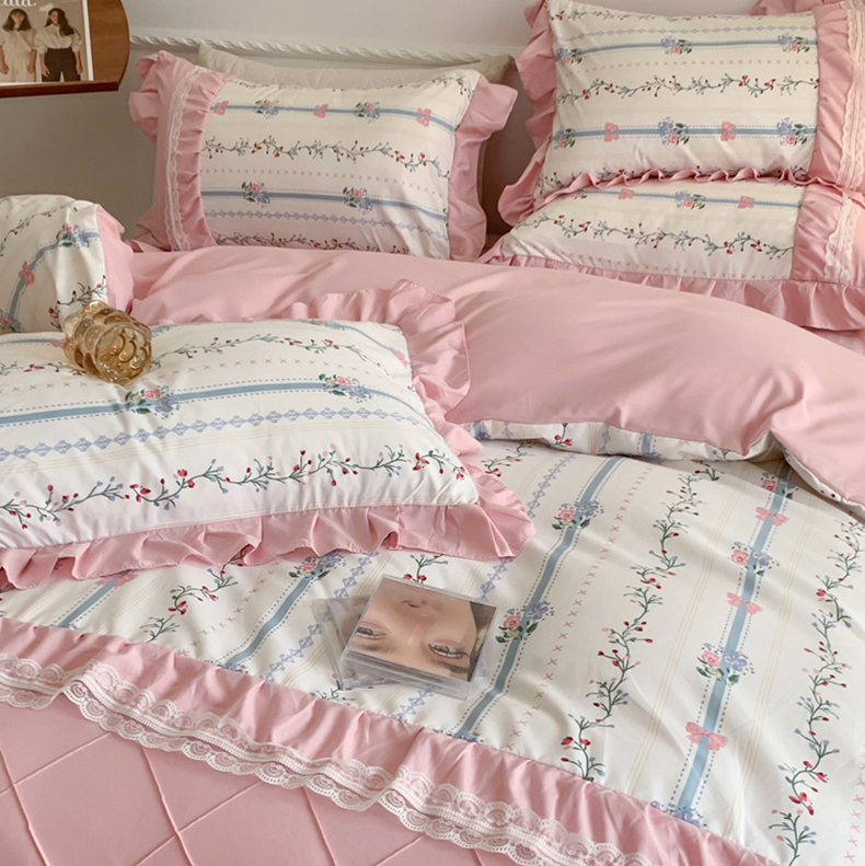 吾欢心 2025新款蝴蝶结款韩版蕾丝花边四件套 悠悠花语
