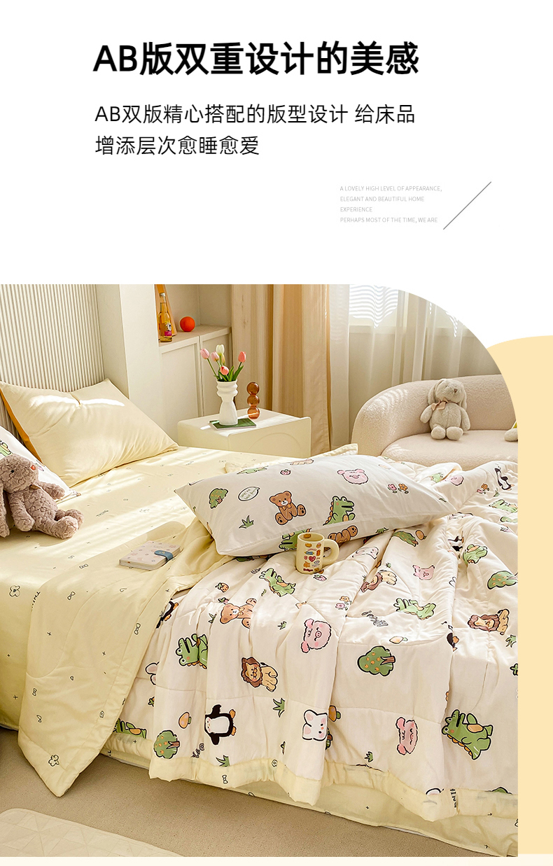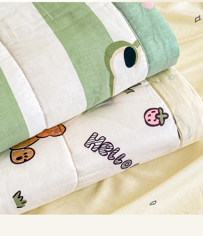 (总)2025新款全棉双层皱皱沙印花花边30%大豆夏凉被纯棉夏被被子被芯,赫本熊,花梦,花期,萌犬,墨颜,星月,玉兔-绿
