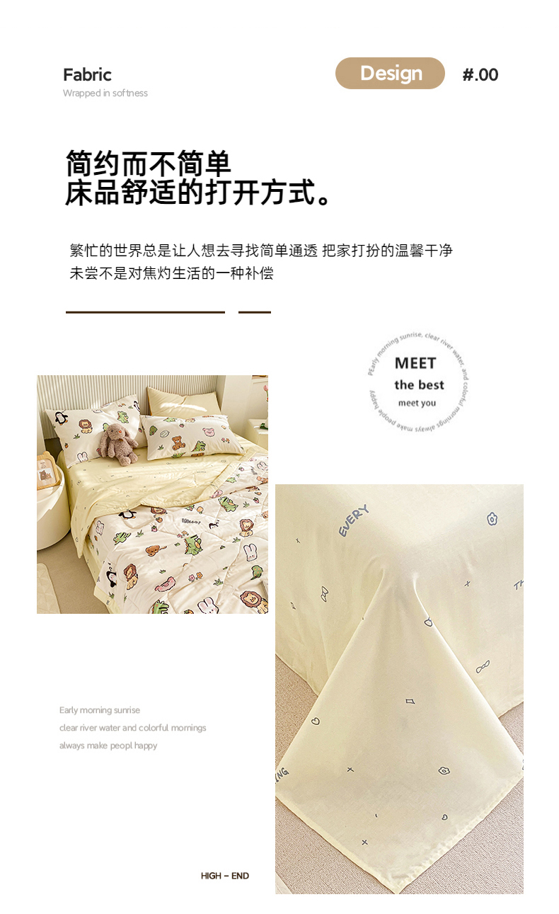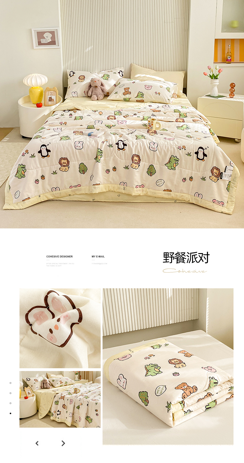 鸣升家纺 A类印花全棉12868棉花夏凉被四件套夏被 野餐派对