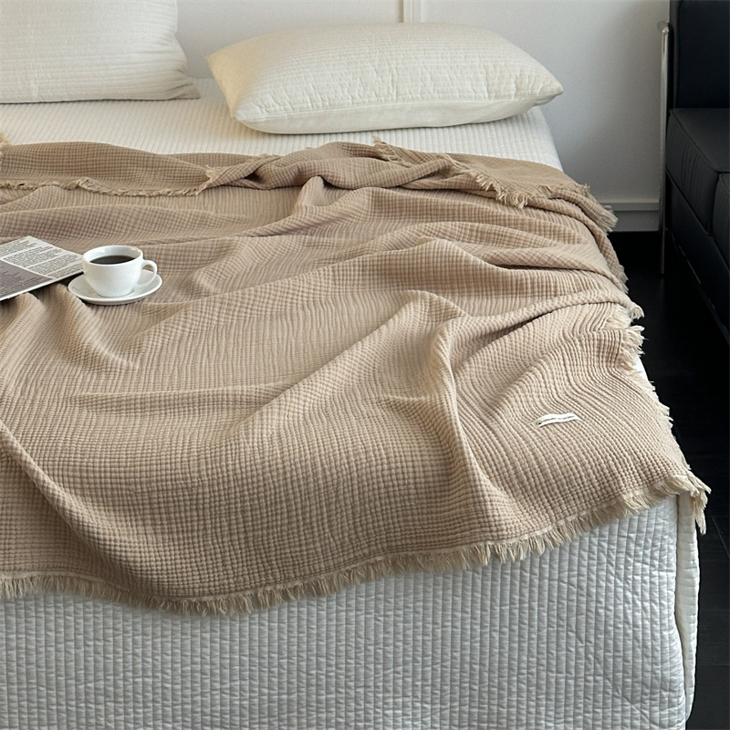商品名称:山舍家居 2024新款废土风四层纱布毯 咖喱