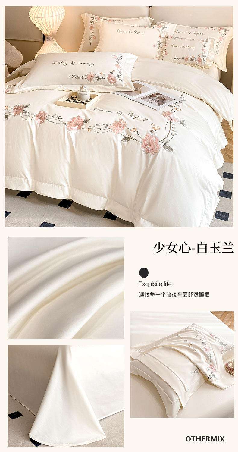 商品名称:蓝米卡夫 2024新品-全棉公主风刺绣宽边少女心系列 少女心-白玉兰