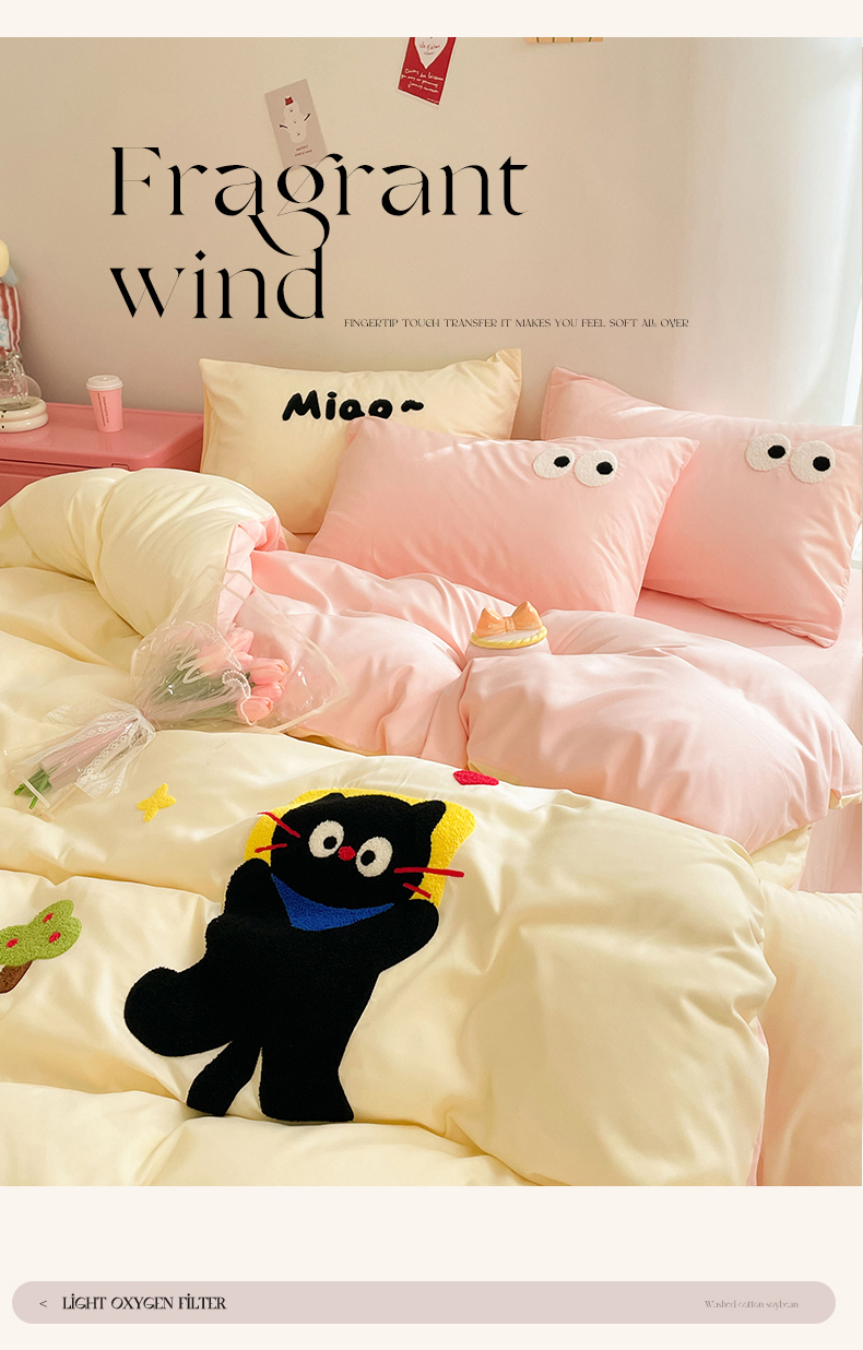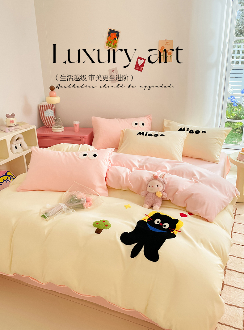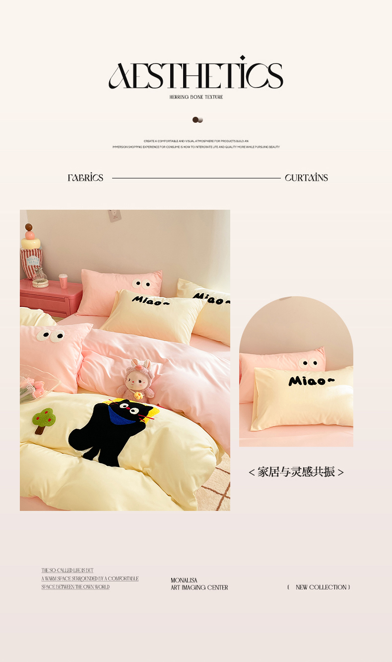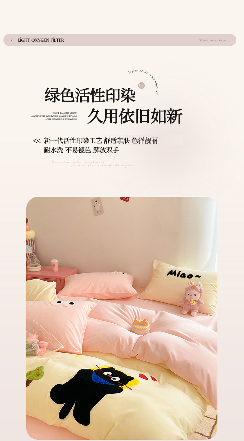 当前位置: 91家纺网 > 商品网购 > 床品套件 > 四件套 > 水洗棉四件套 > 我心家纺 2024新款亲肤多巴胺水洗棉毛巾绣四件套 贪睡猫-米粉