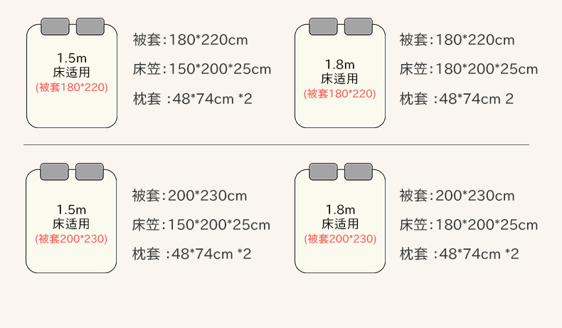 1.8m床笠款四件套(被套200*230) | ¥80.00 |
