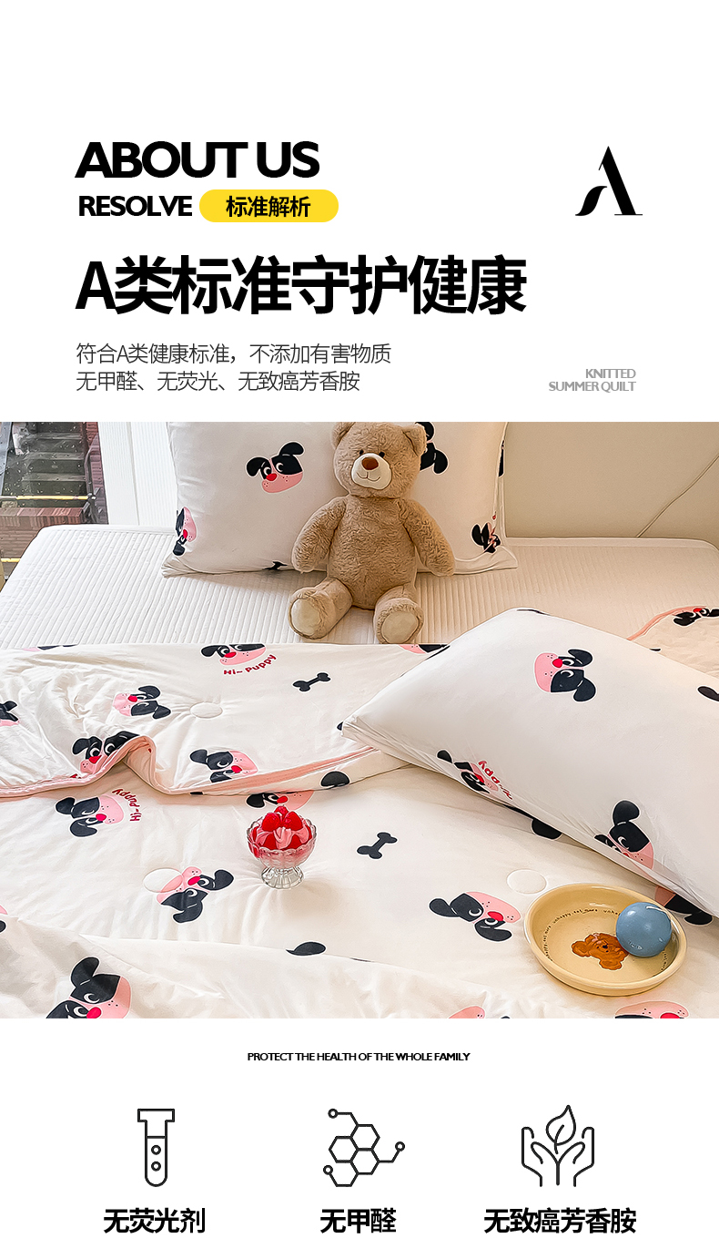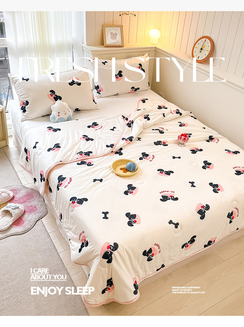 桃子家居 2024新款A类高品质牛奶丝软糯针织棉夏被 针织棉-恰恰狗