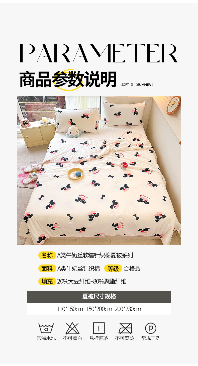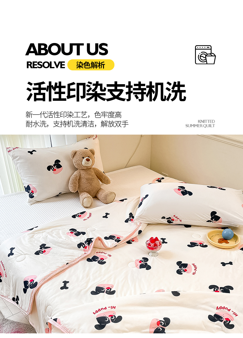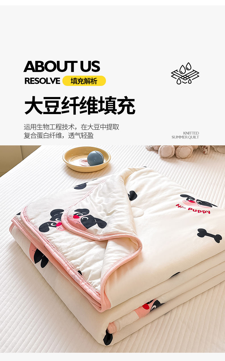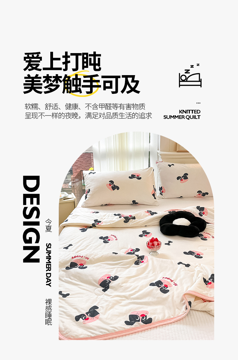 商品名称:桃子家居 2024新款A类高品质牛奶丝软糯针织棉夏被 针织棉-恰恰狗