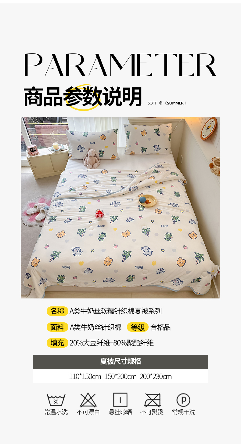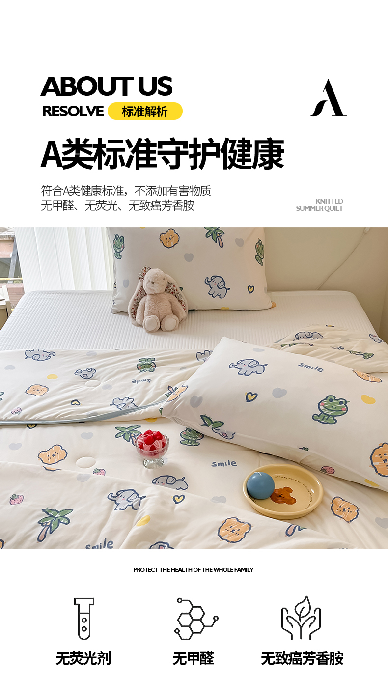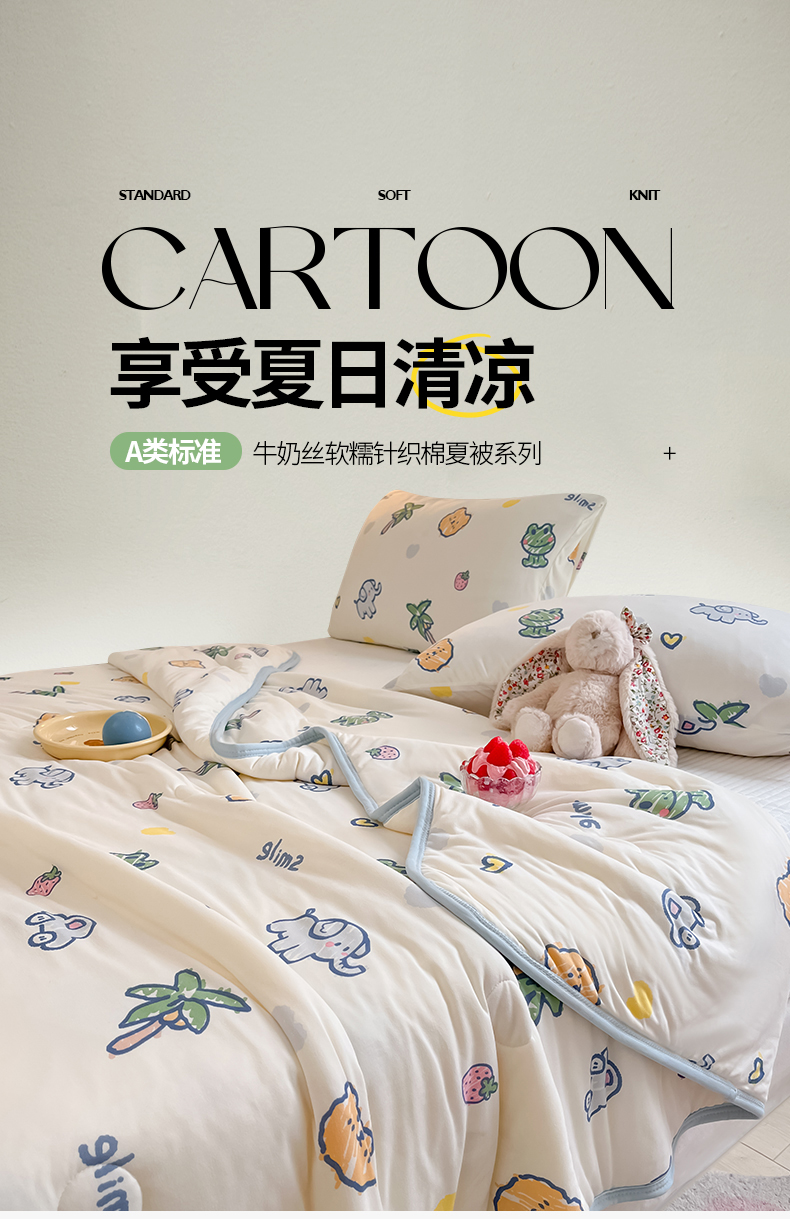 商品名称:桃子家居 2024新款A类高品质牛奶丝软糯针织棉夏被 针织棉-夏日么么茶