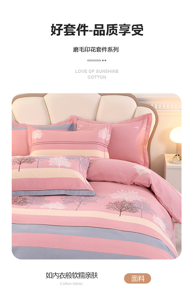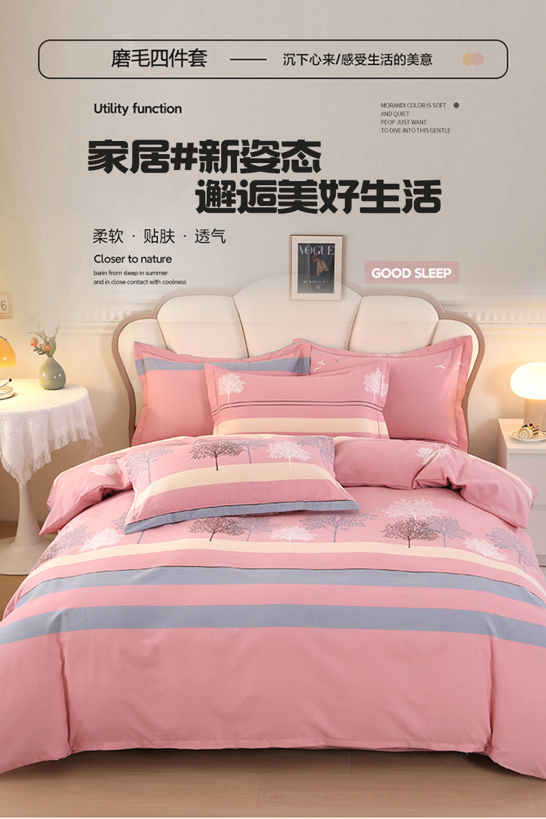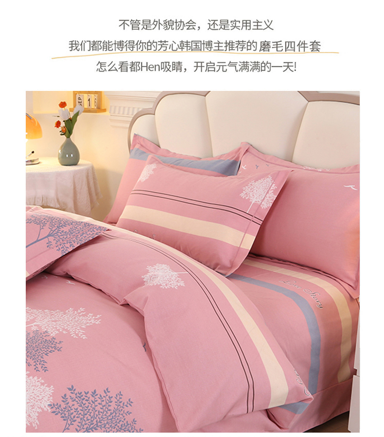 商品名称:橘姿 2023升级喷气全棉磨毛四件套纯棉四件套加厚直播树荫粉