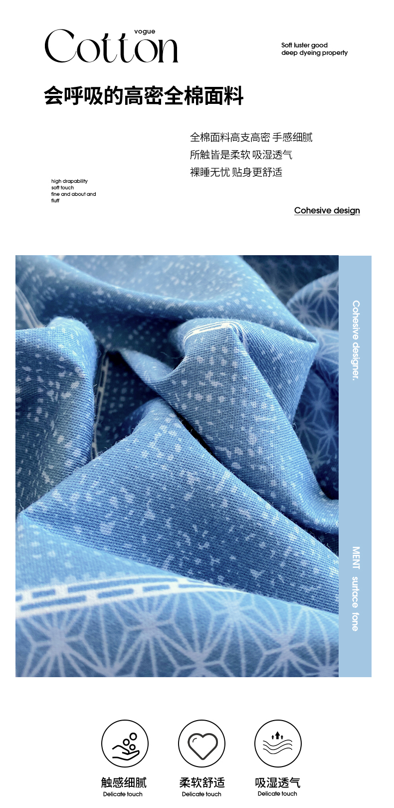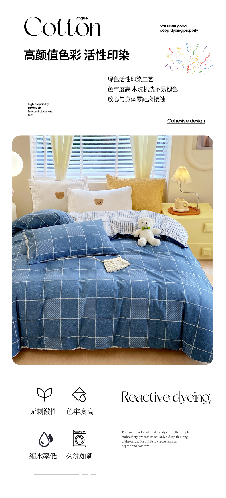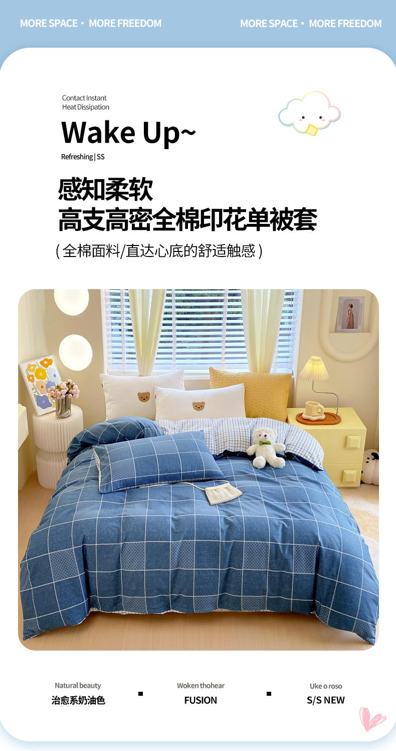 商品名称:洺兰 2025年全棉喷气印花四件套纯棉床单床笠款小清新花卉北欧风--单被套 格调