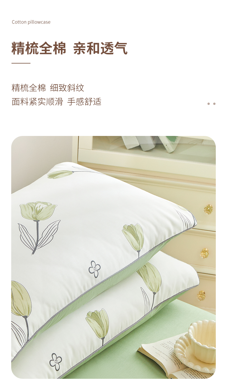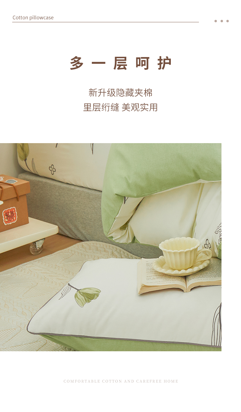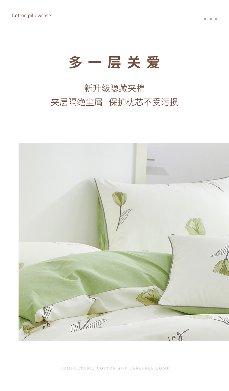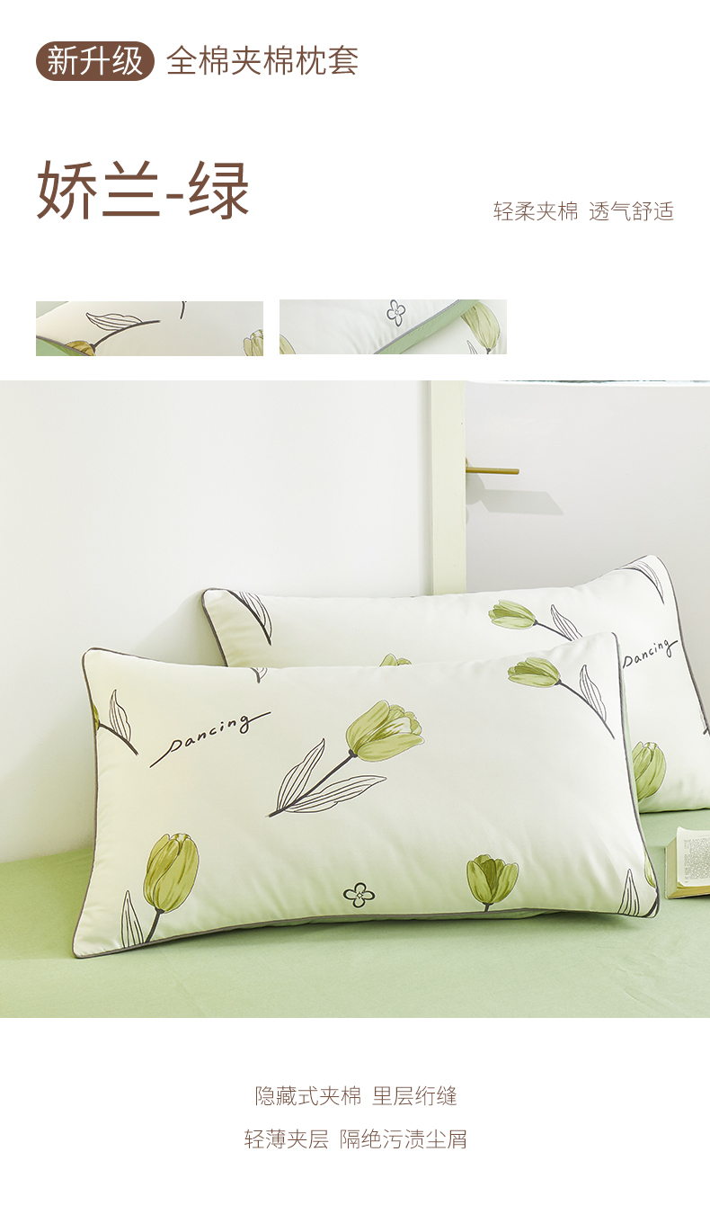 商品名称:元元 2024新款小清新隐藏式夹棉套件单品-夹棉枕套 娇兰-绿