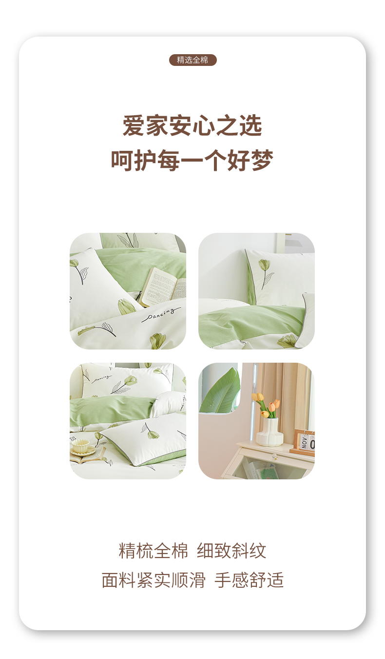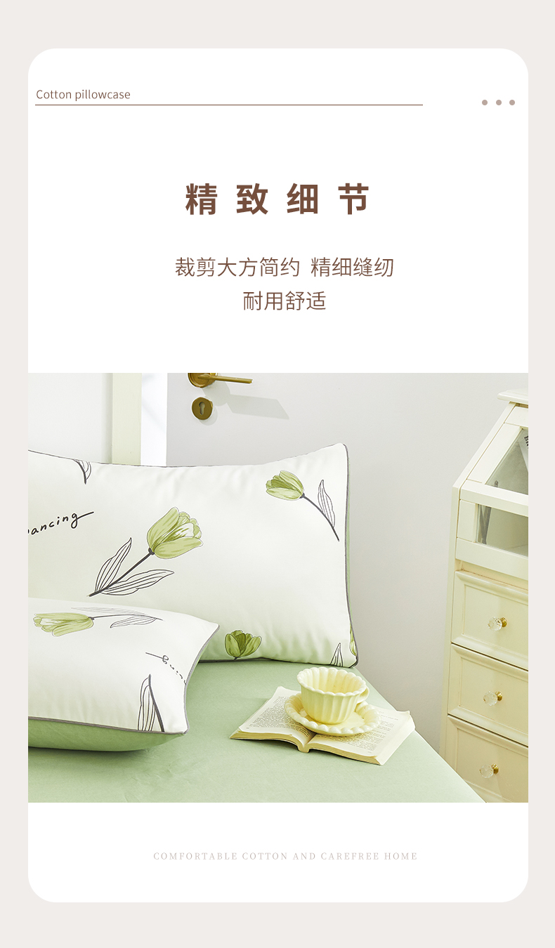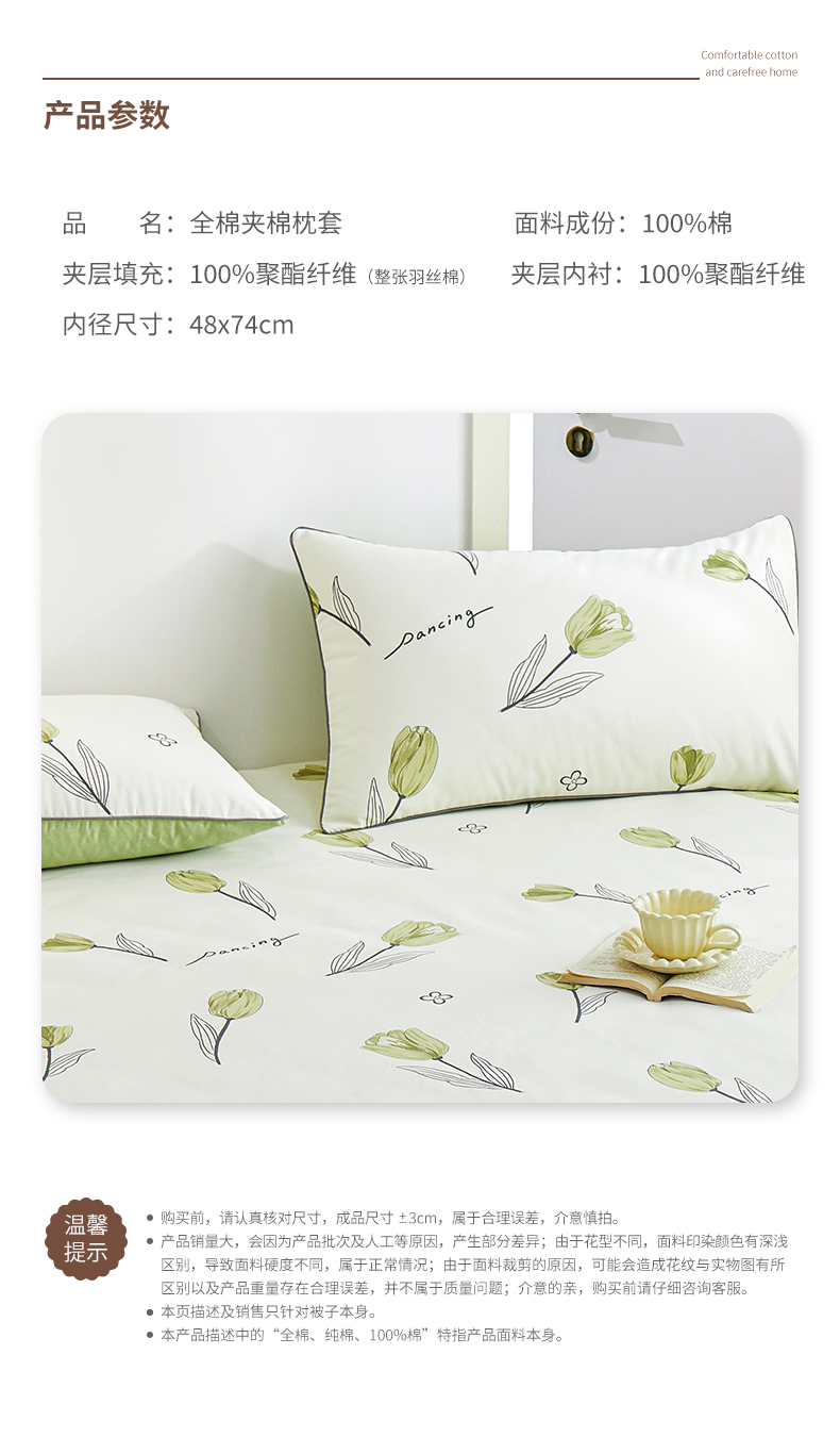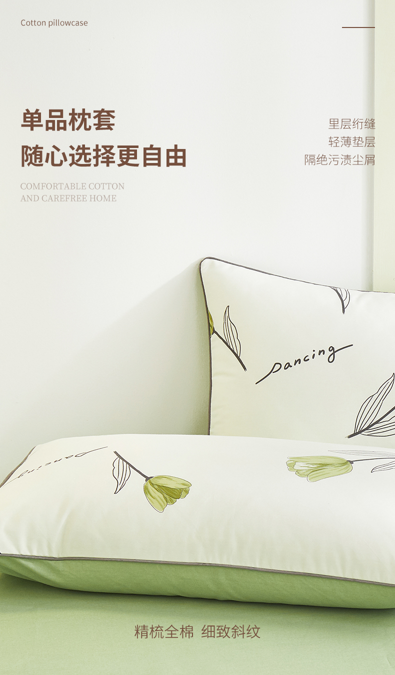 商品名称:元元 2024新款小清新隐藏式夹棉套件单品-夹棉枕套 娇兰-绿