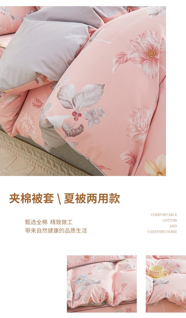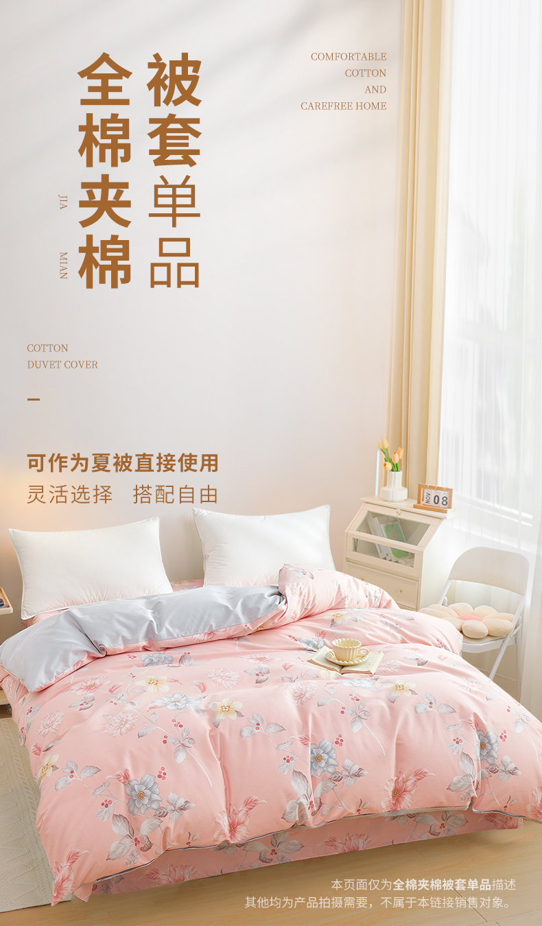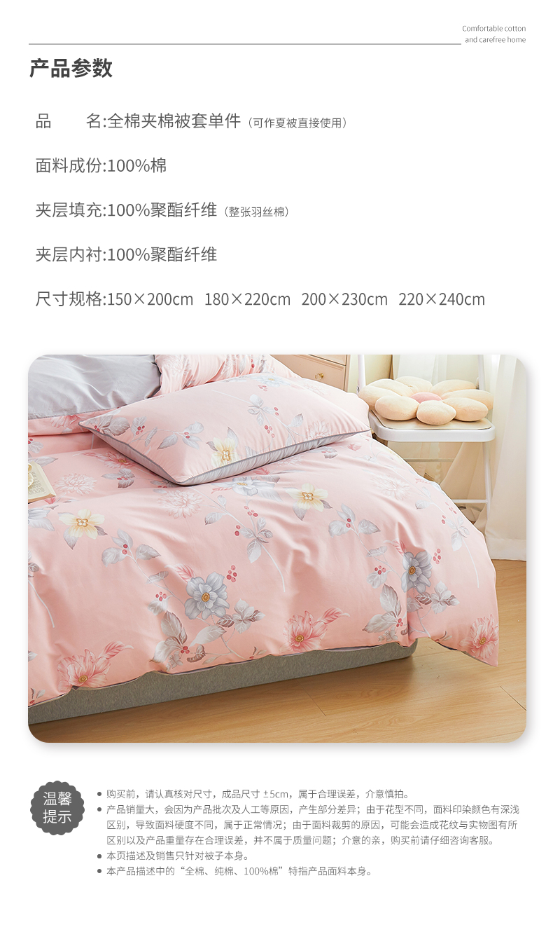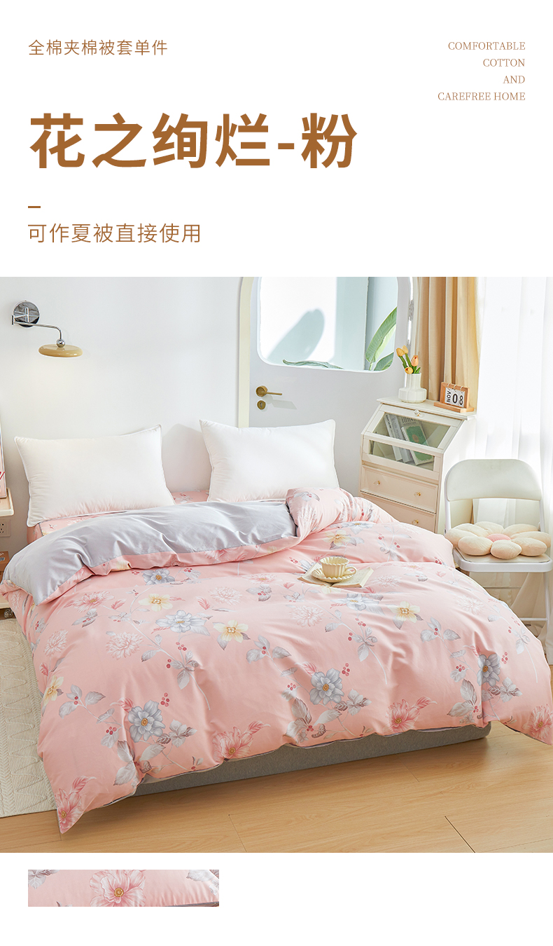 商品名称:元元 2024新款小清新隐藏式夹棉套件单品-夹棉被套 花之绚烂-粉