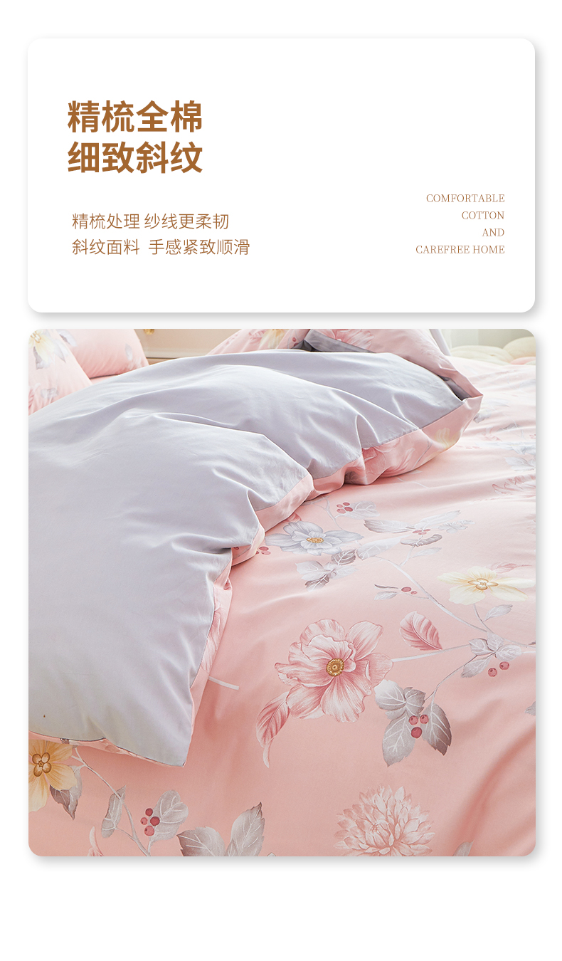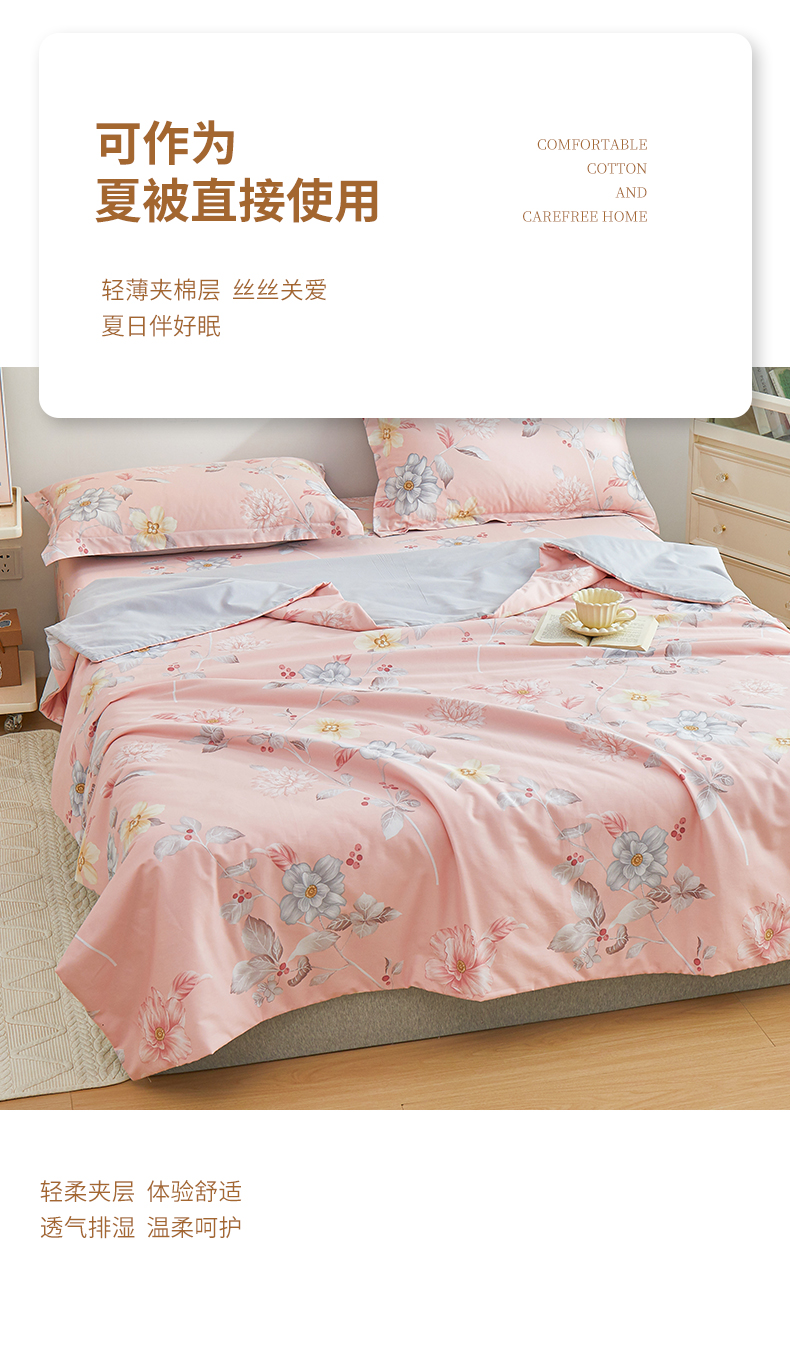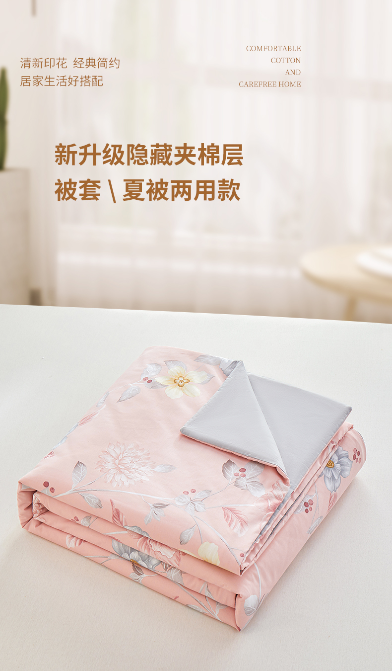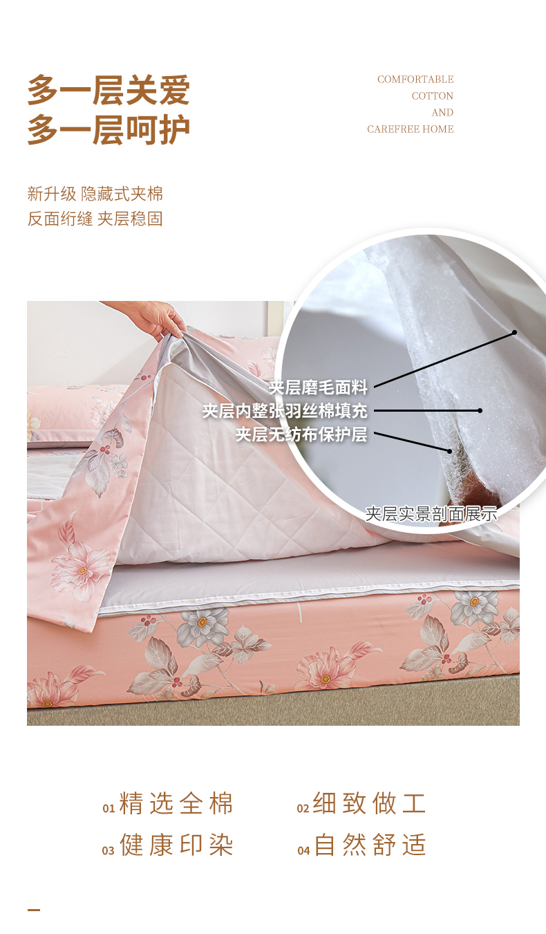 商品名称:元元 2024新款小清新隐藏式夹棉套件单品-夹棉被套 花之绚烂-粉