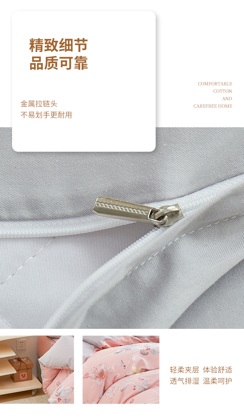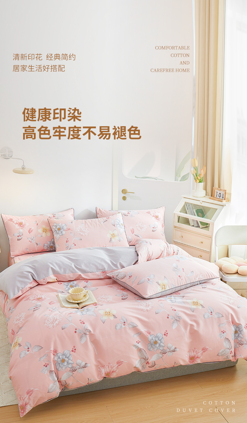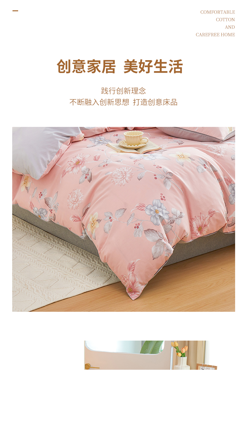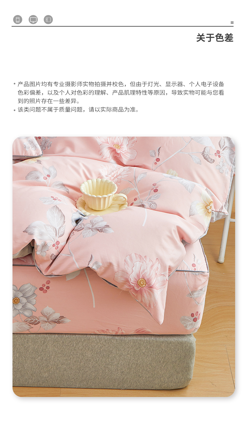 商品名称:元元 2024新款小清新隐藏式夹棉套件单品-夹棉被套 花之绚烂-粉