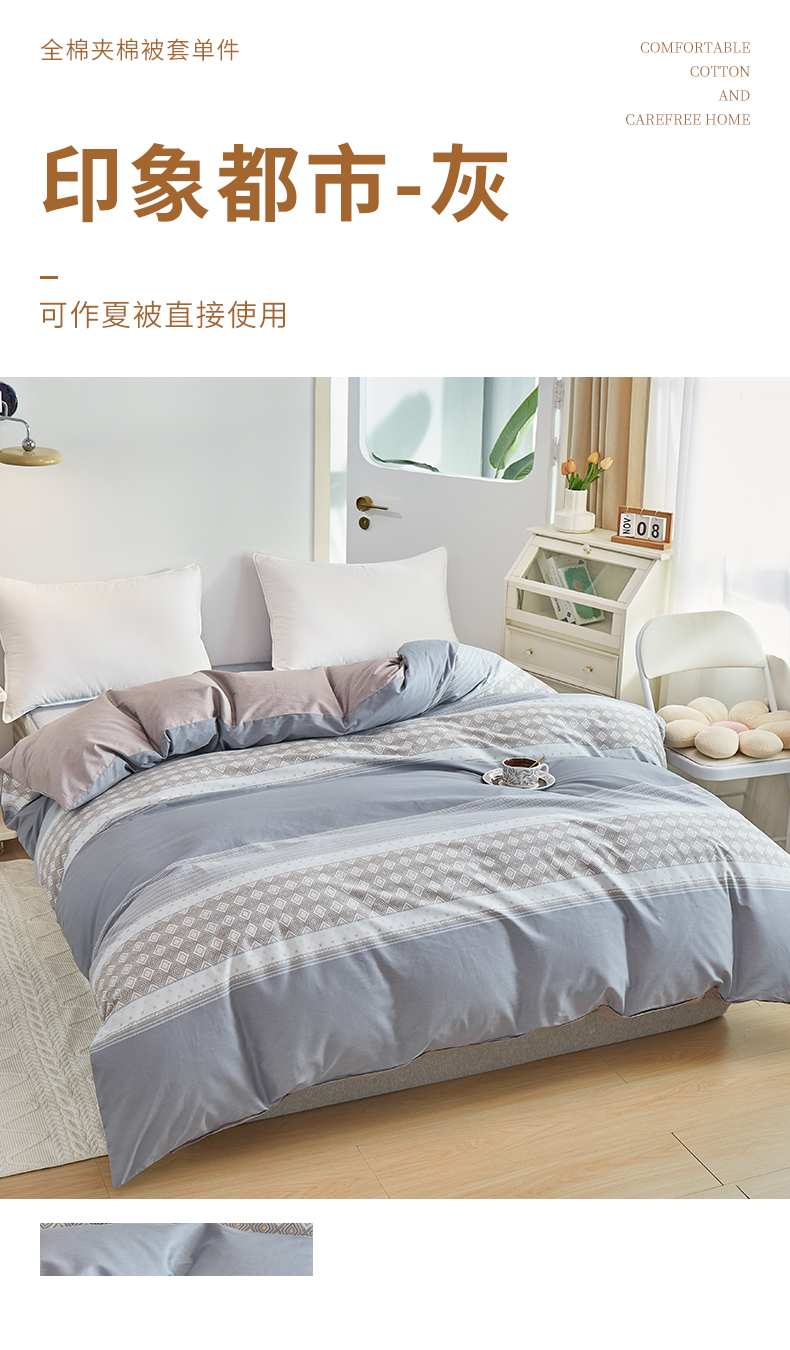 商品名称:元元 2024新款小清新隐藏式夹棉套件单品-夹棉被套 印象都市-灰