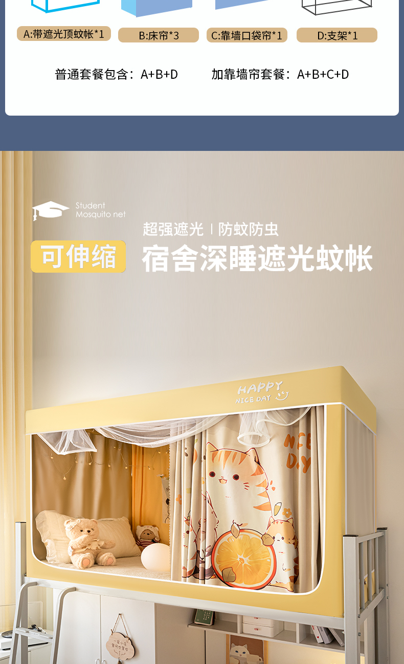 (总)澳萝拉 2025新款纯色梭织遮光床帘学生宿舍上下铺蚊帐-3D建模图无涂层不覆膜(稳定供货 量小也不缺),卡其,藏青,高级灰,灰蓝,蔷薇红,藏青+卡其,蔷薇红+卡其
