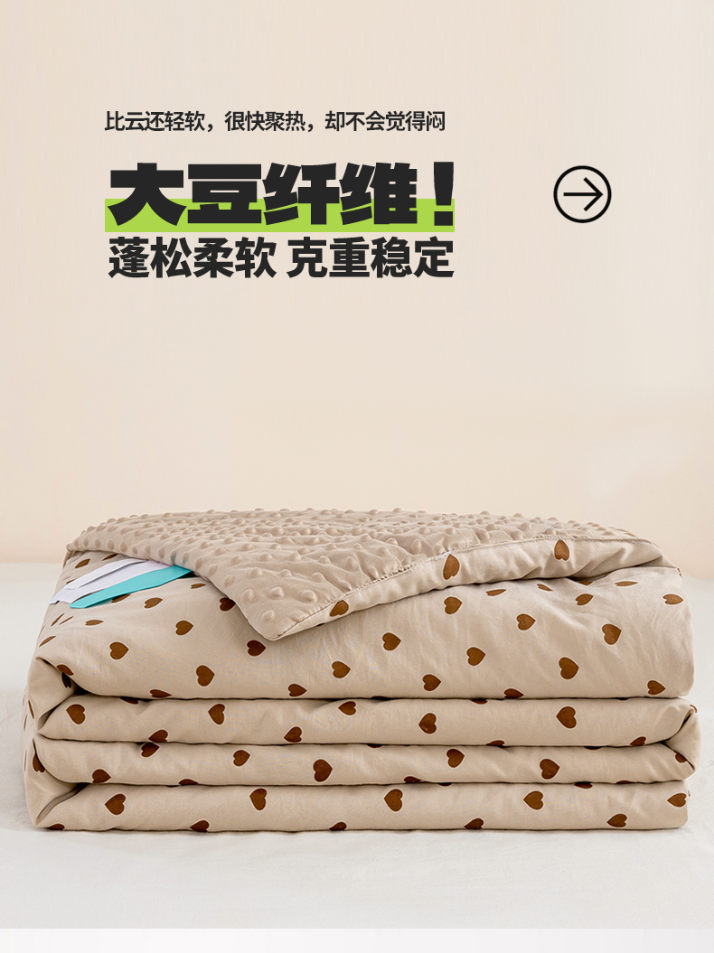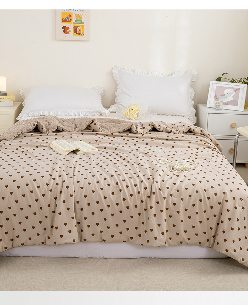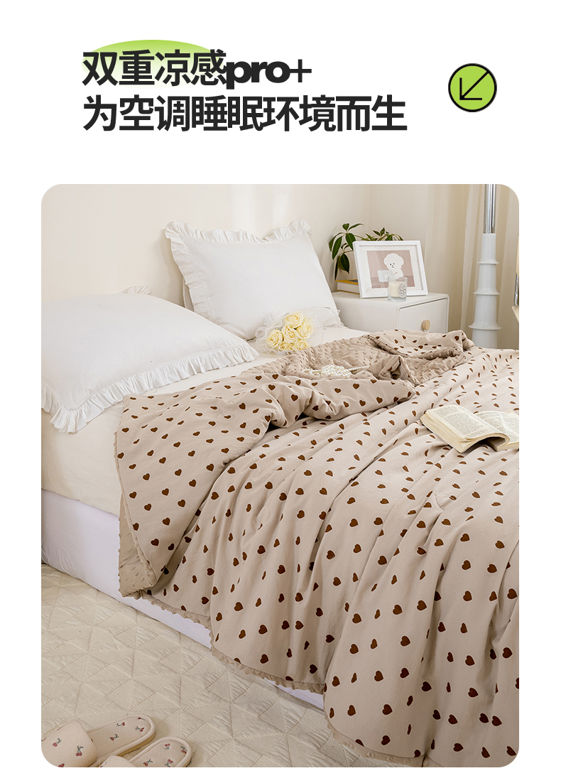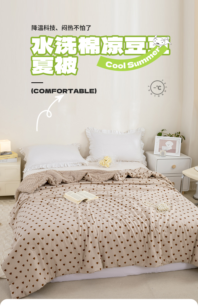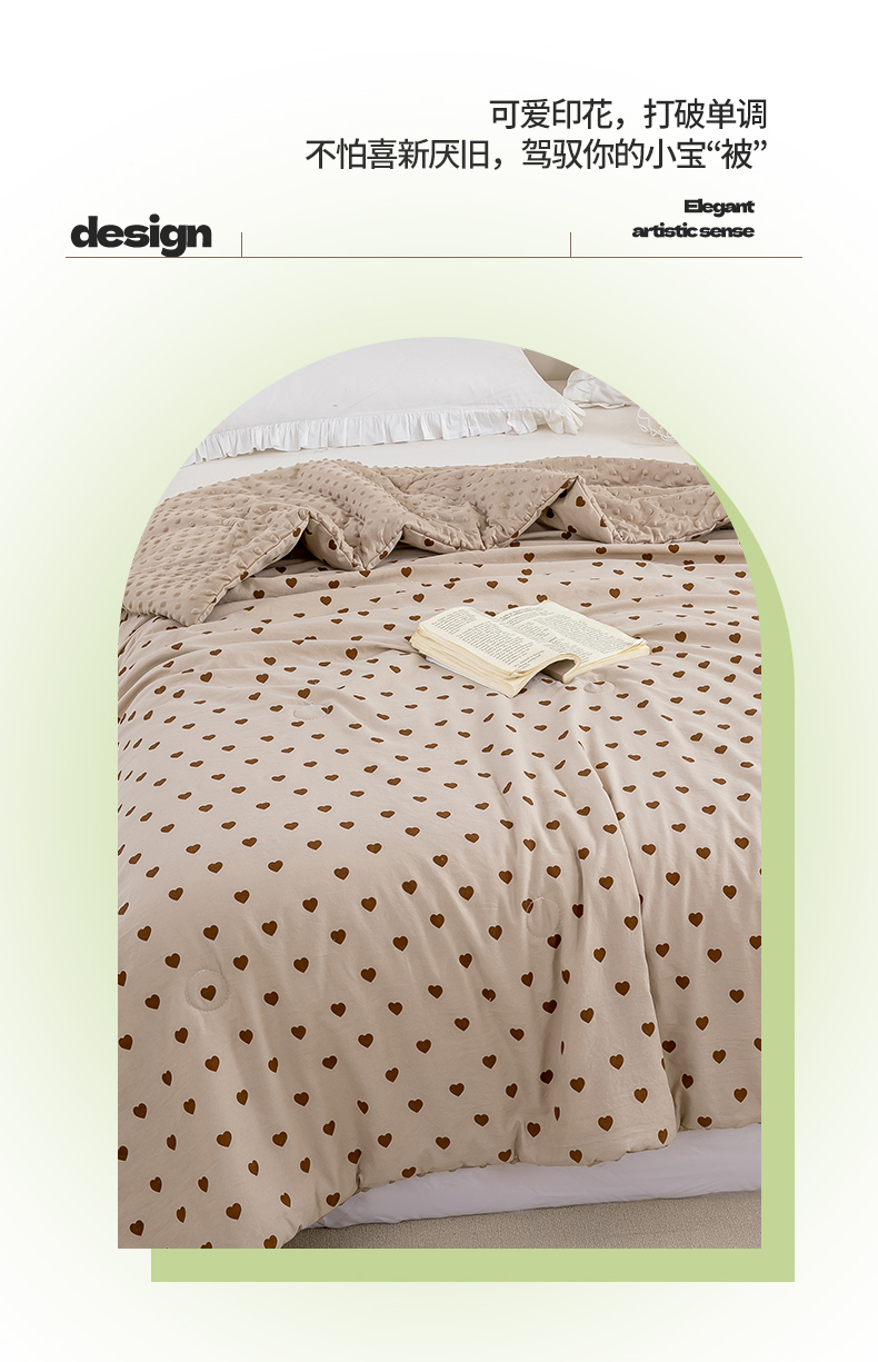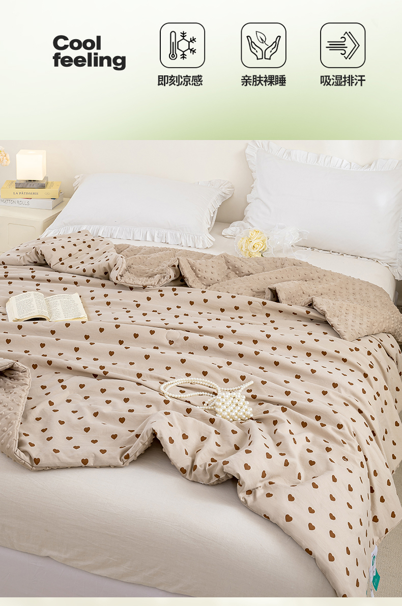 芯元素 2024新款A类水洗棉凉豆豆夏被 爱心-咖
