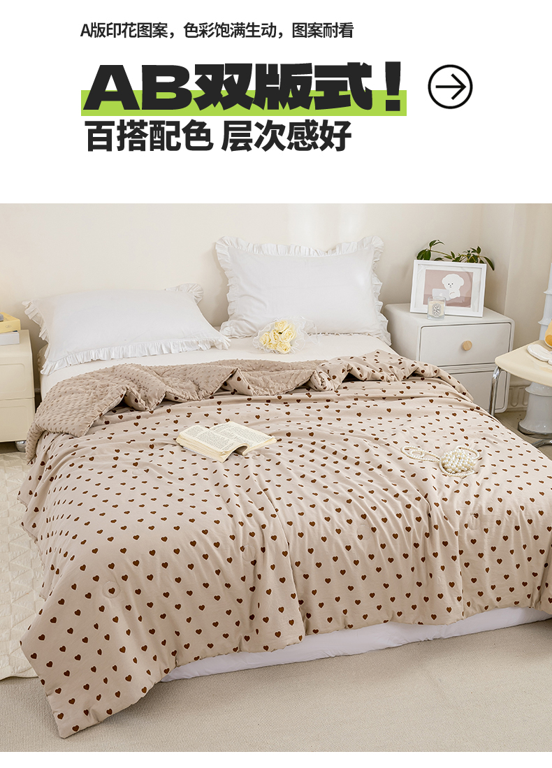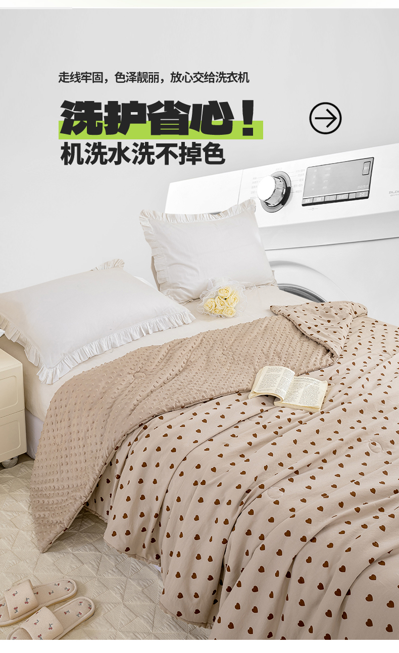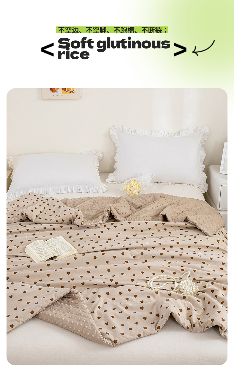 商品名称:芯元素 2024新款A类水洗棉凉豆豆夏被 爱心-咖
