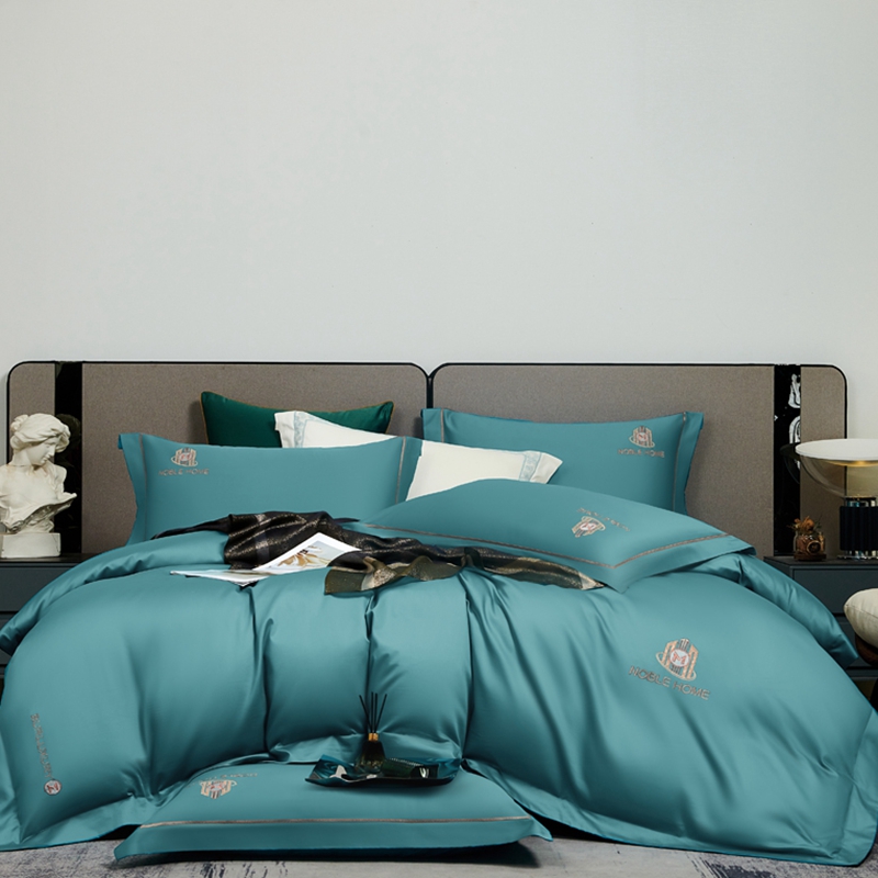 U品汇(全棉磨毛源头厂家) 2024春夏新品60s支贡缎长绒棉刺绣花四件套纯棉全棉100%纯色简约轻奢 伯爵-宾利兰
