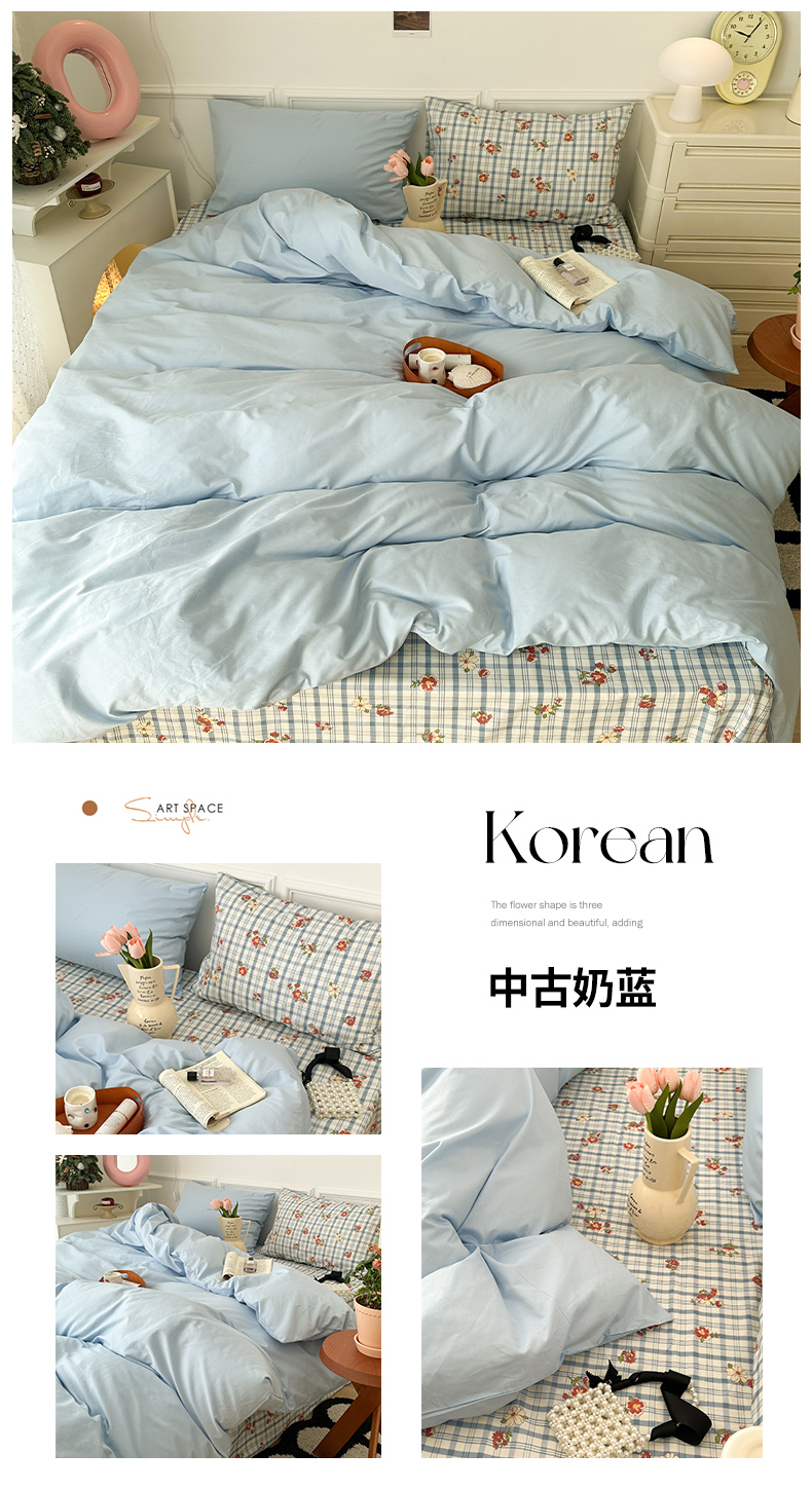 商品名称:昔可家纺 2024新款韩式混搭系列四件套 中古奶蓝