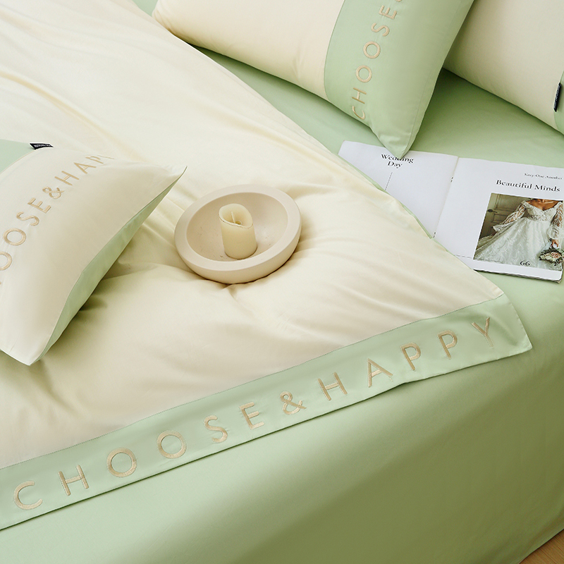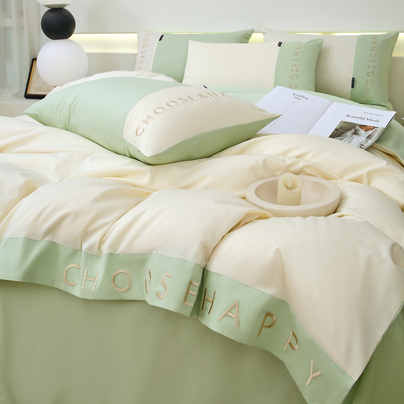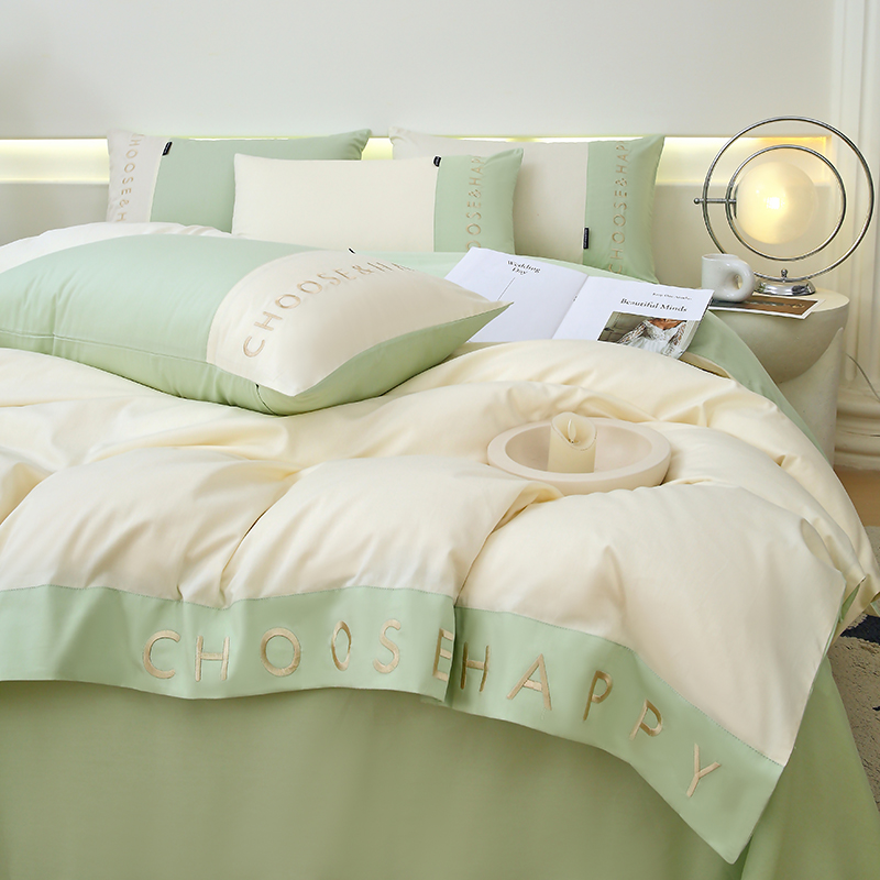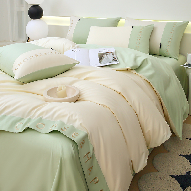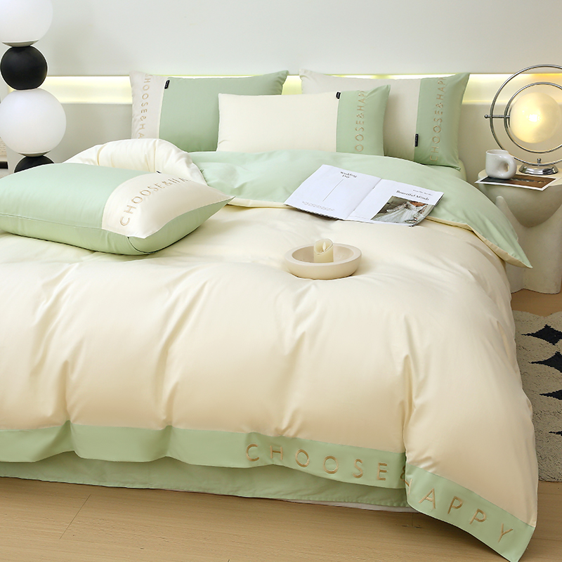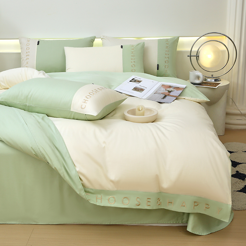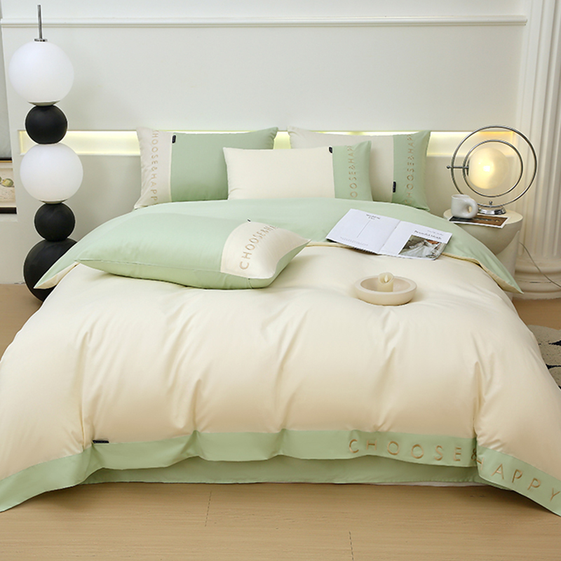 2024新款简约家居.刺绣纯色拼色四件套--伊可系列 伊可-峰白+葵青