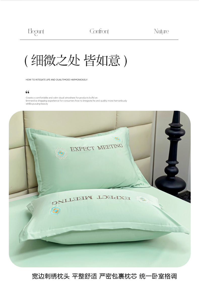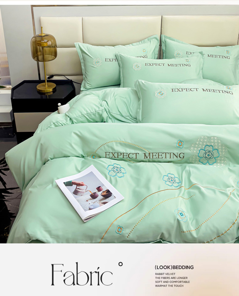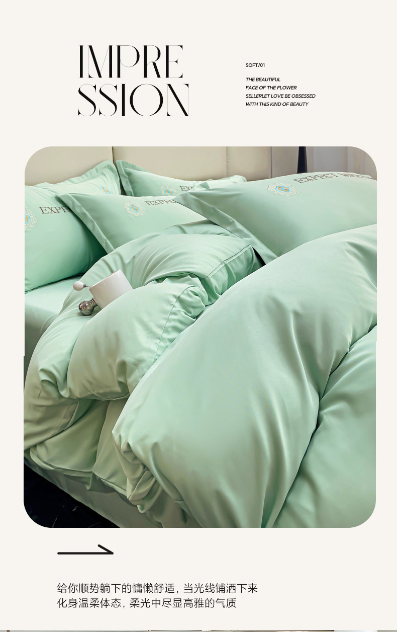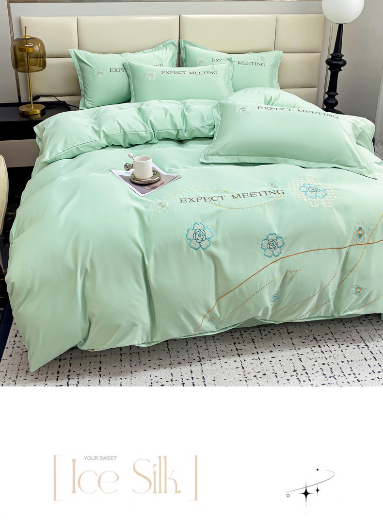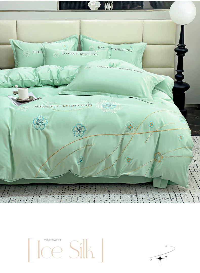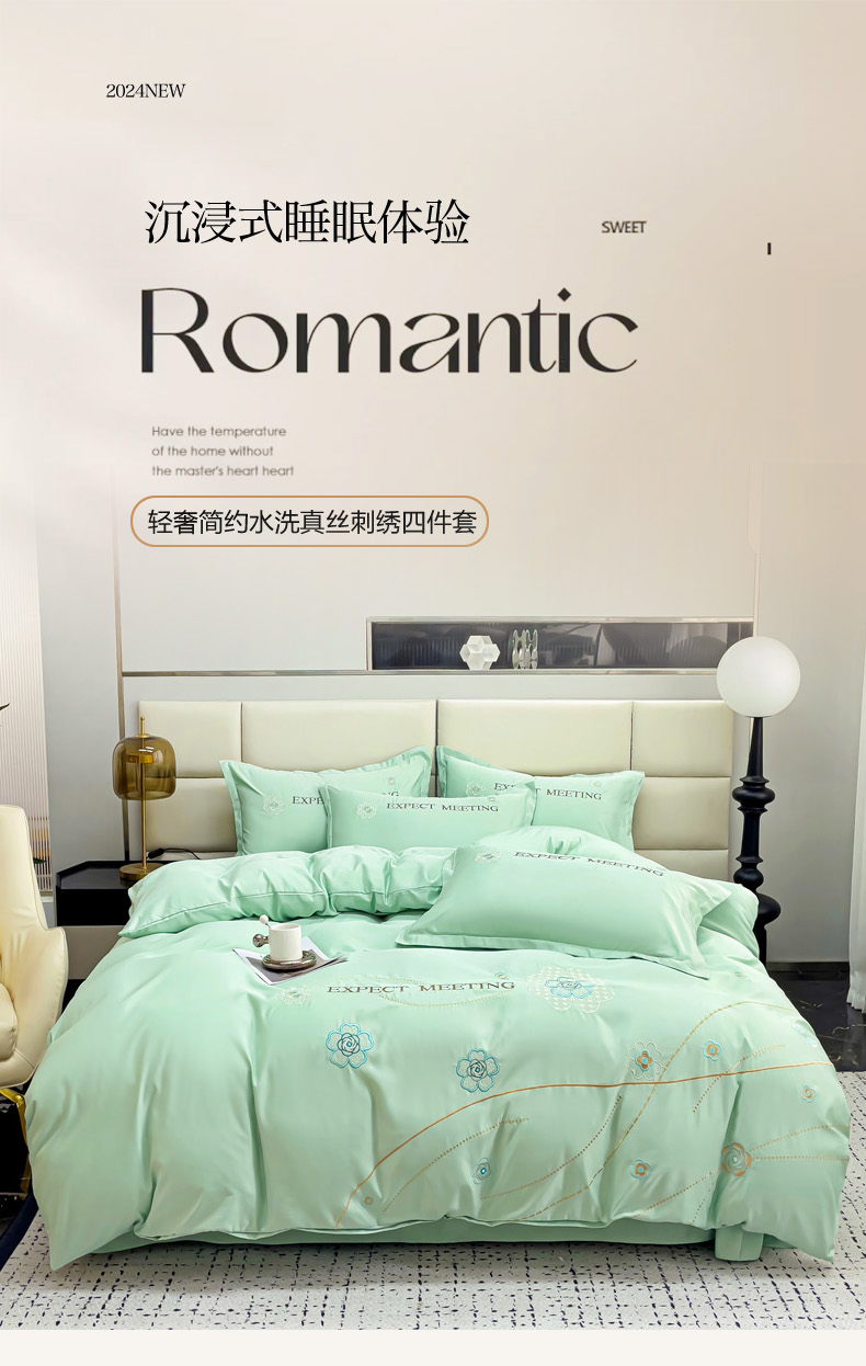 恋佳居 2025新款水洗真丝刺绣四件套 花漾-豆绿