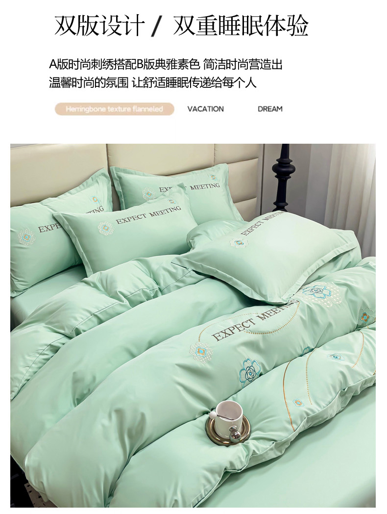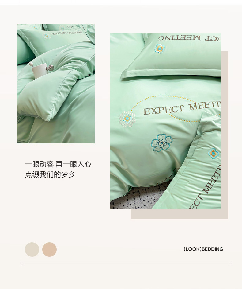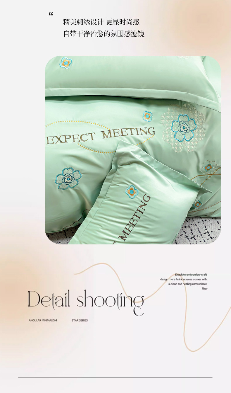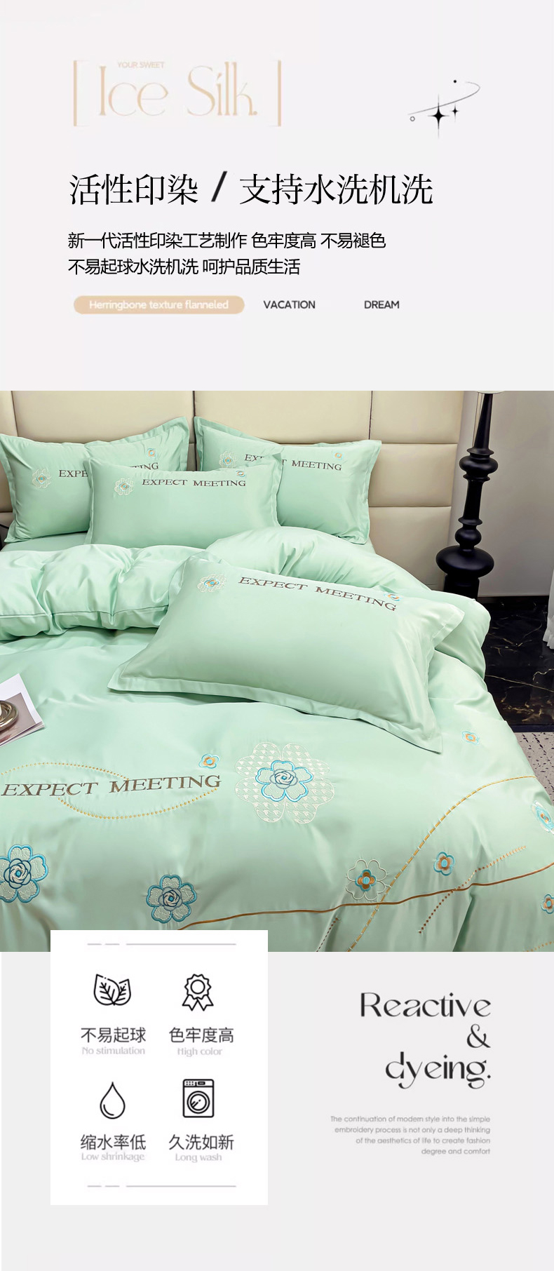 商品名称:恋佳居 2025新款水洗真丝刺绣四件套 花漾-豆绿