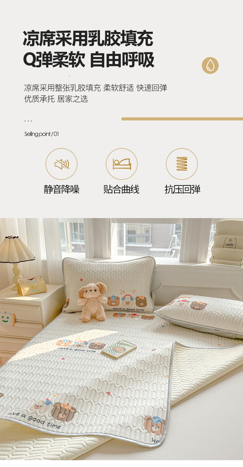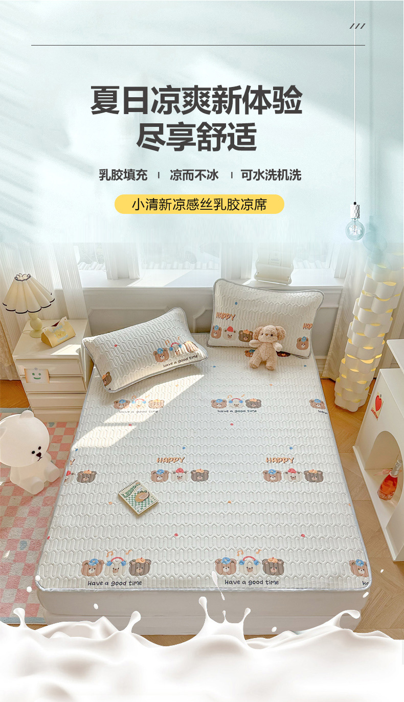 慕尚家纺 2025新款凉感丝印花乳胶凉席 乐园伙伴