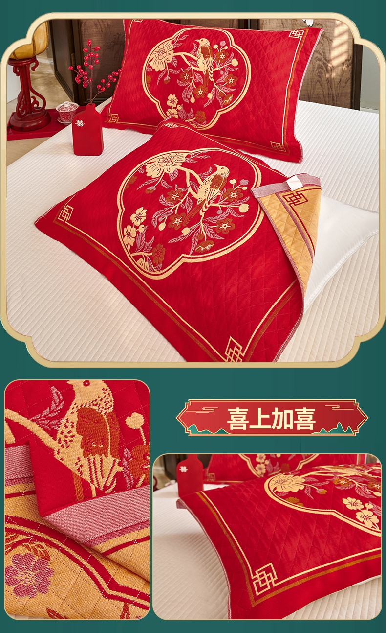 (总)美宜家 2025新款四层全棉纱布婚庆枕巾枕套枕头,百年好合,吉祥如意,喜上眉梢,喜气洋洋,喜结良缘,喜结连理,心心相印,欢欢喜喜,浪漫爱情,双喜临门,真爱永恒,花好月圆