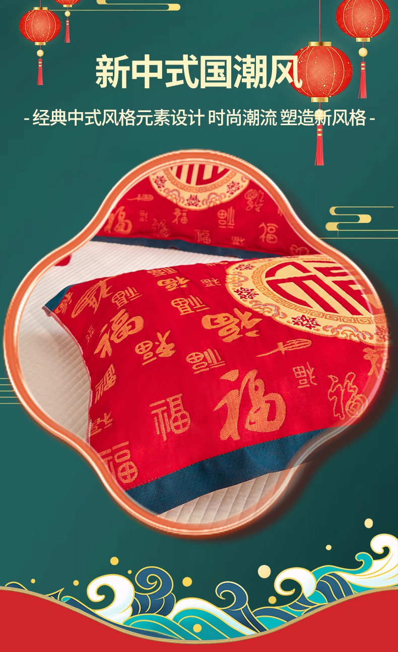 商品名称:(总)美宜家 2025新款龙年全棉国潮大红多层纱布枕巾情侣婚庆枕巾52*78一对装
