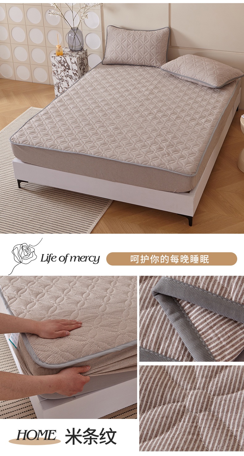 商品名称:杜先生 2024新款无印风水洗棉夹棉床笠 米条纹