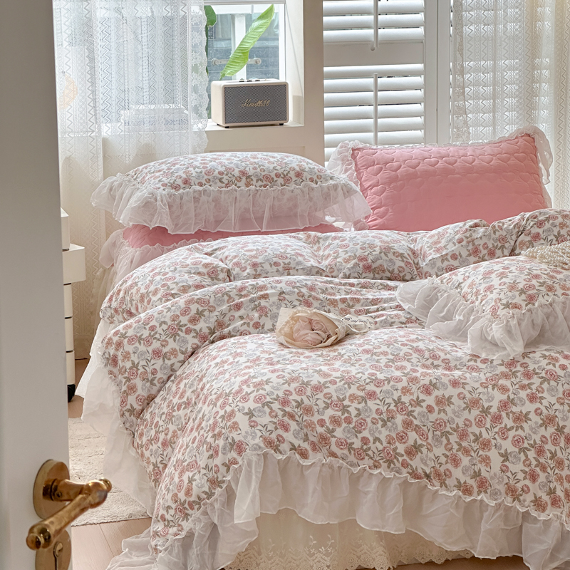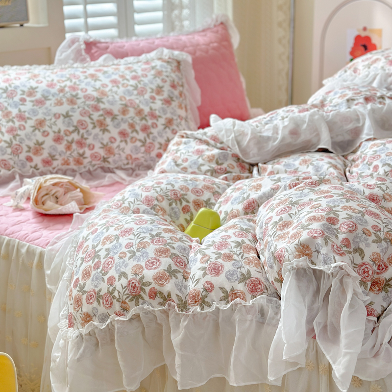 当前位置: 91家纺网 > 商品网购 > 床品套件 > 四件套 > 双层纱四件套 > 淑女公社 2024春夏新款竹棉双层纱床裙款四件套-玫瑰庄园 玫瑰庄园 粉