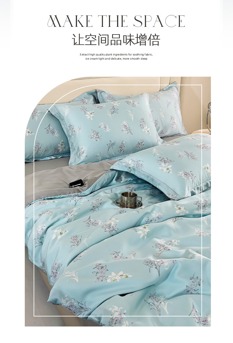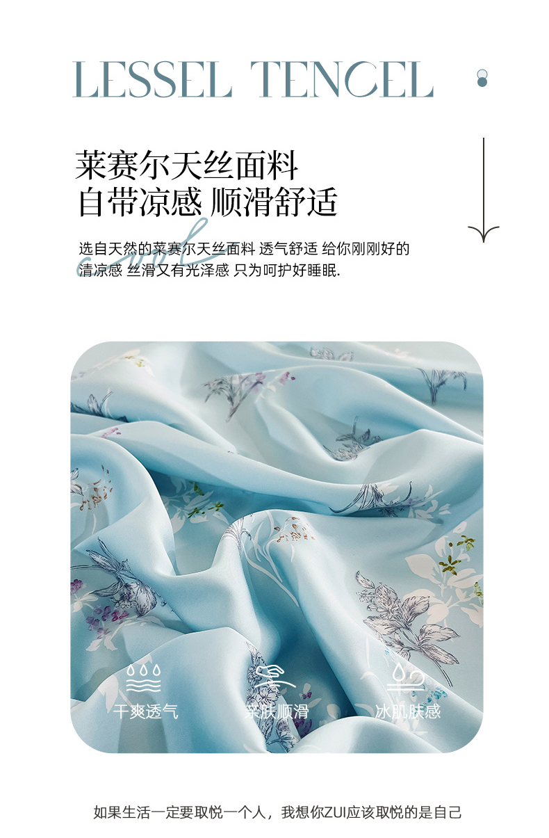 当前位置: 91家纺网 > 商品网购 > 床品套件 > 四件套 > 莱赛尔四件套 > 锦罗绣 2024新款80s奥地利进口兰精天丝四件套 悠悠花香