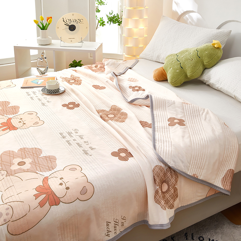 牛魔王 2025新款冰丝凉感丝夏被 花朵熊-米