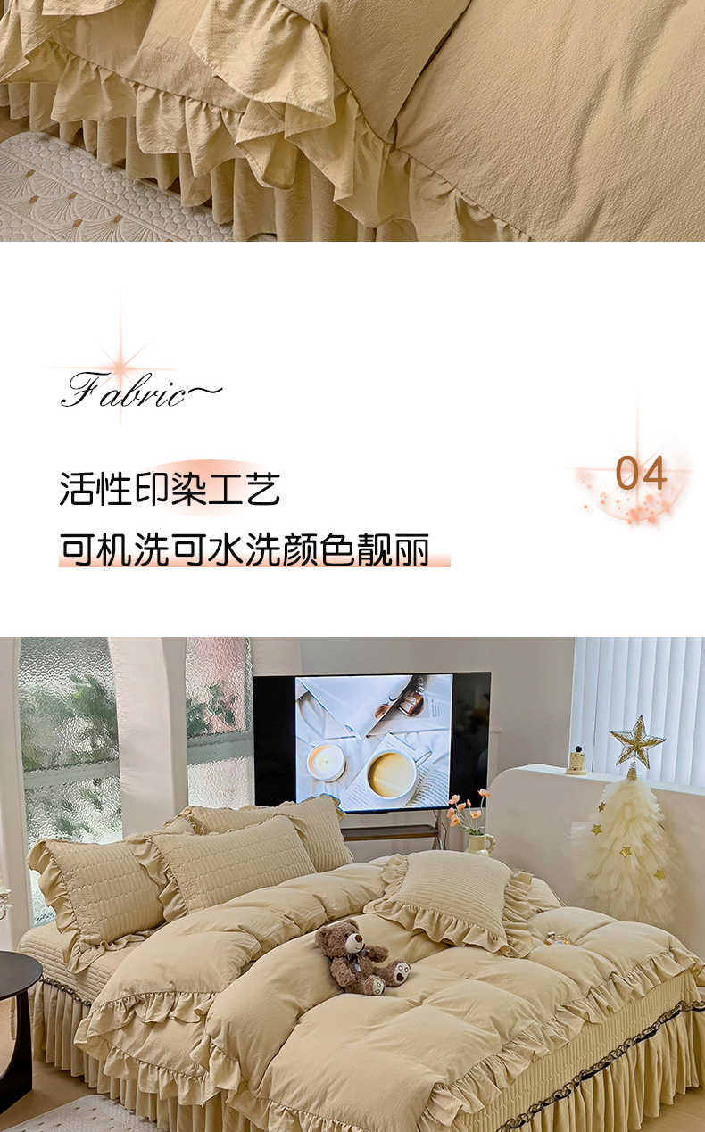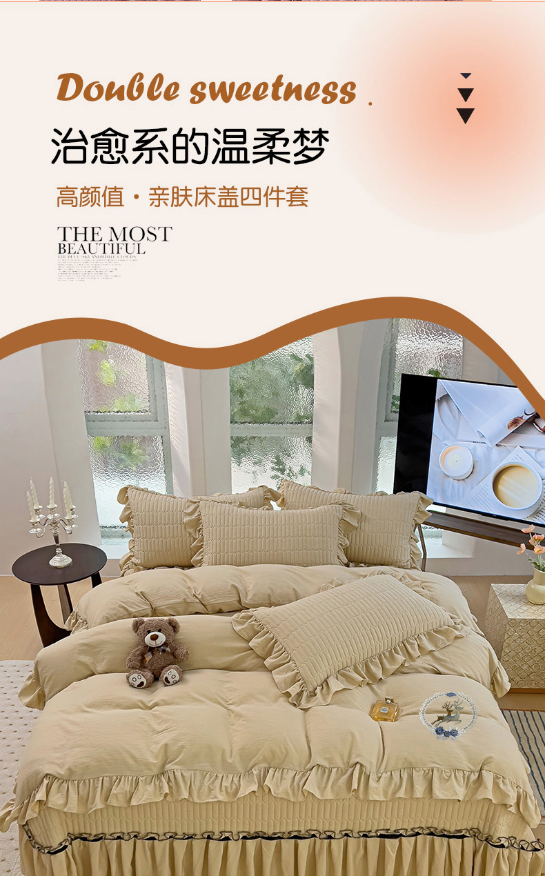 (总)言熙居 2024直播爆款新款牛奶绒法兰绒蕾丝花边黑纱四件套,蕾丝-小清新黄,蕾丝-小清新桔,蕾丝-小清新蓝,蕾丝-小清新绿,蕾丝-小清新抹茶绿,蕾丝-小清新玉,蕾丝-小清新紫