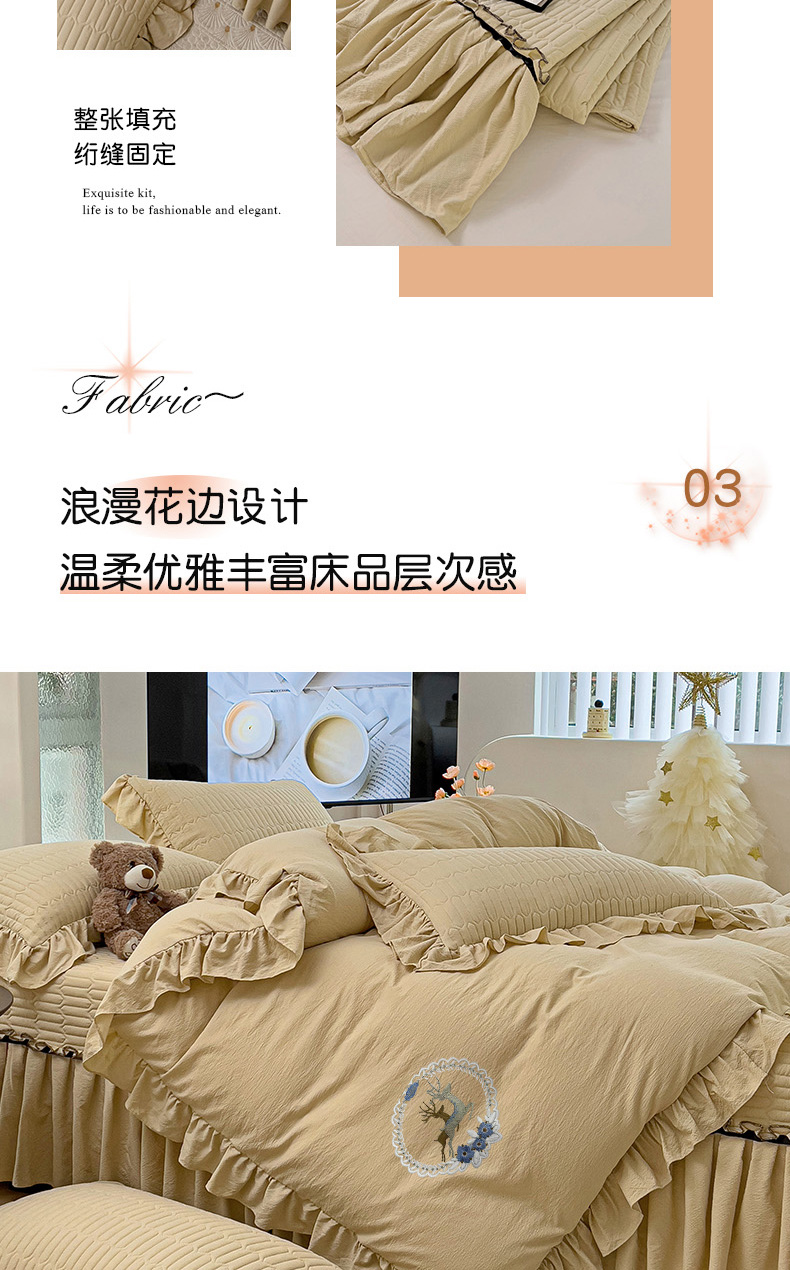 言熙居家纺 2024新款亲肤床盖四件套-浪漫之约 浪漫之约卡其