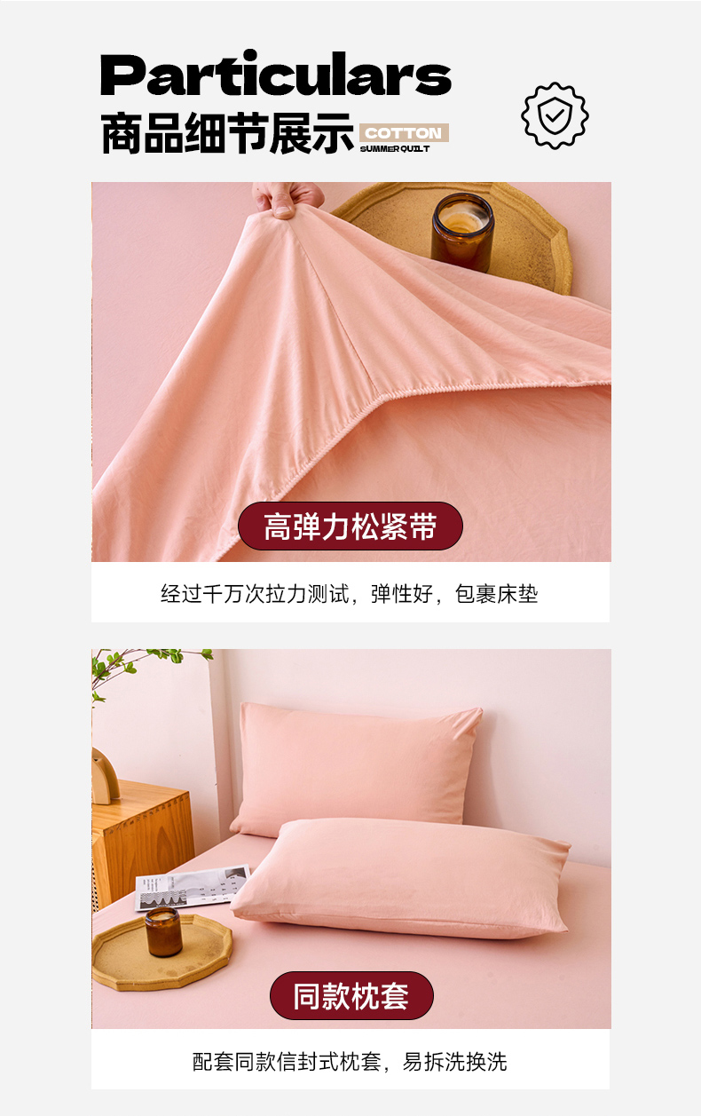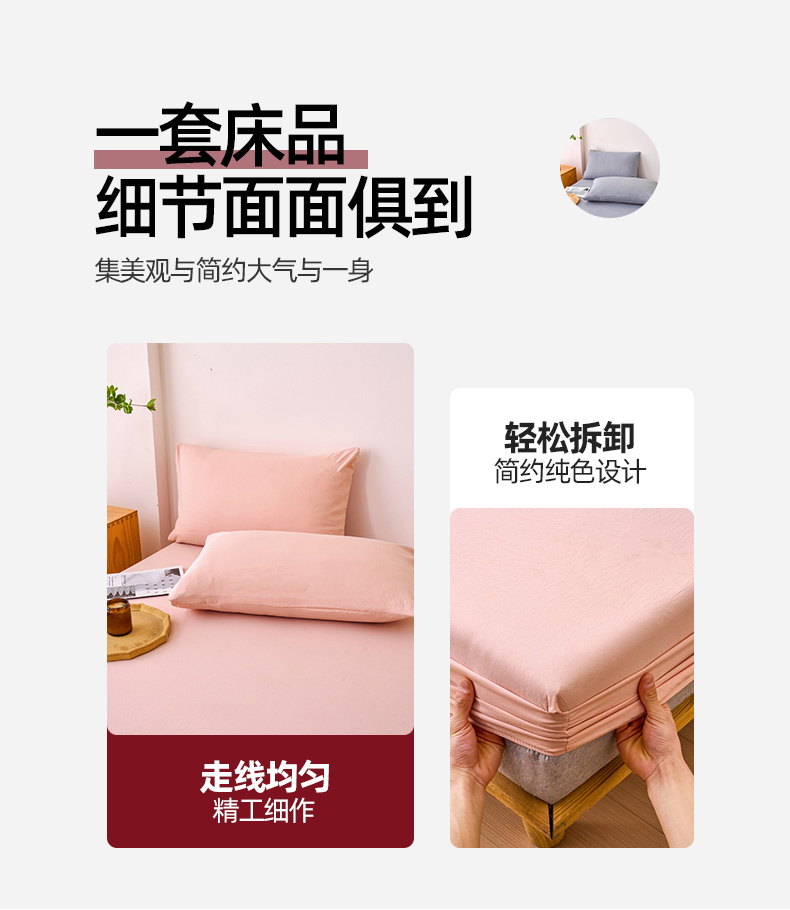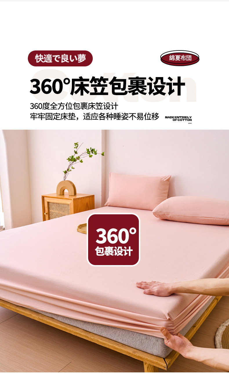 云尚床笠 热卖简约风纯色原棉床笠系列 粉色