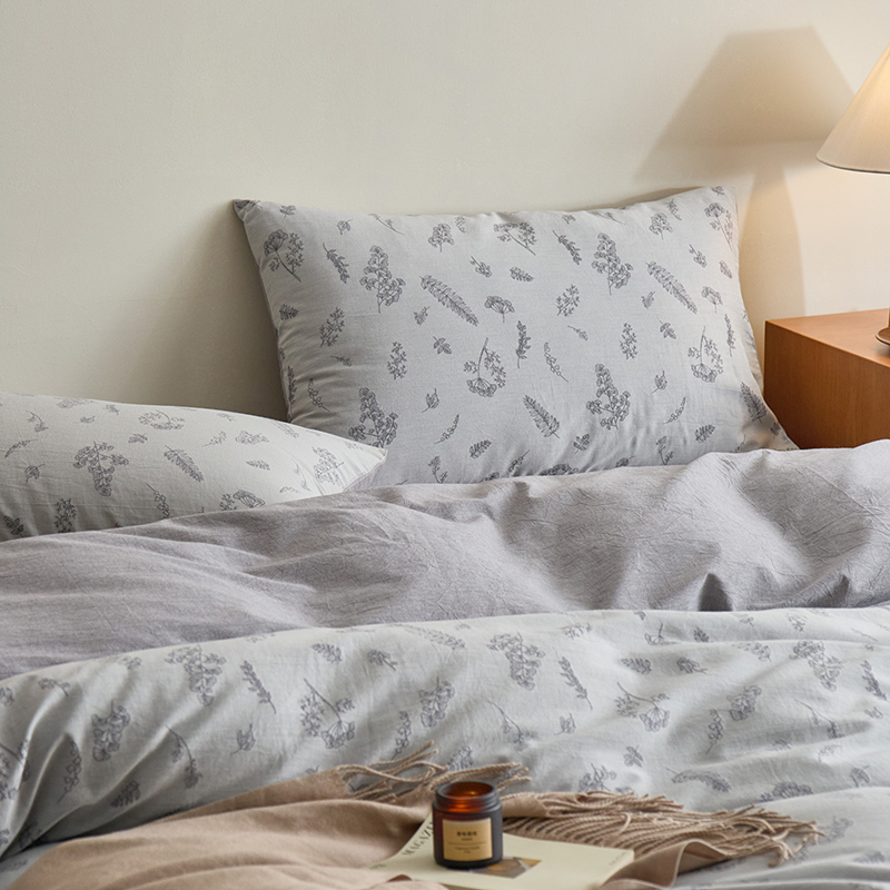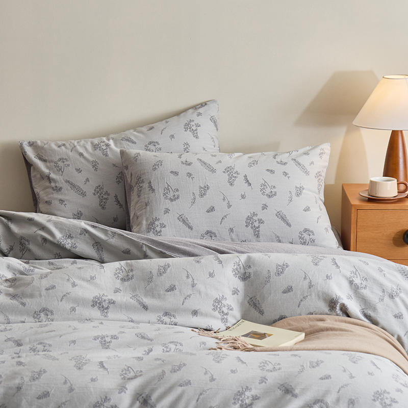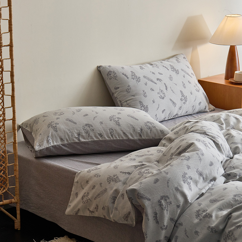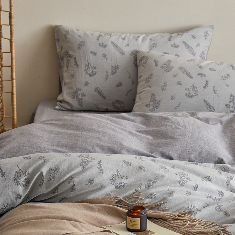 当前位置: 91家纺网 > 商品网购 > 床品套件 > 四件套 > 提花四件套 > 原研家居 2024新款水洗棉提花系列四件套 叶语-灰