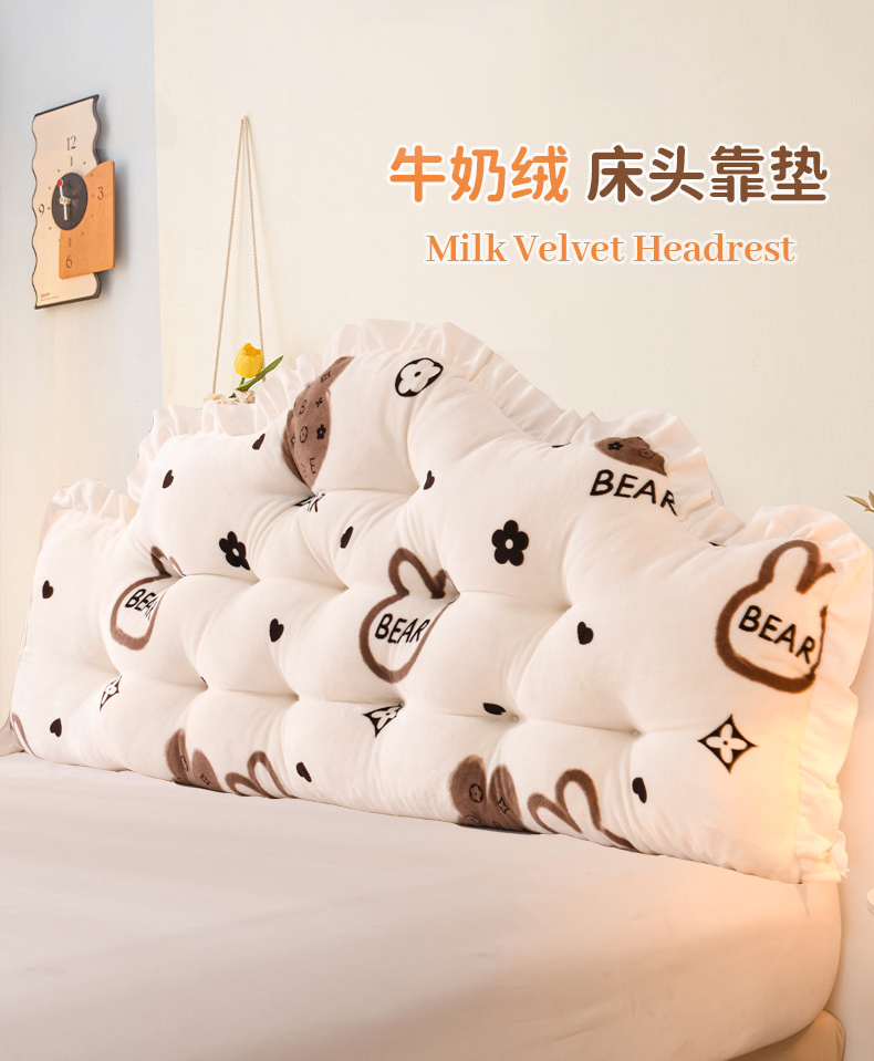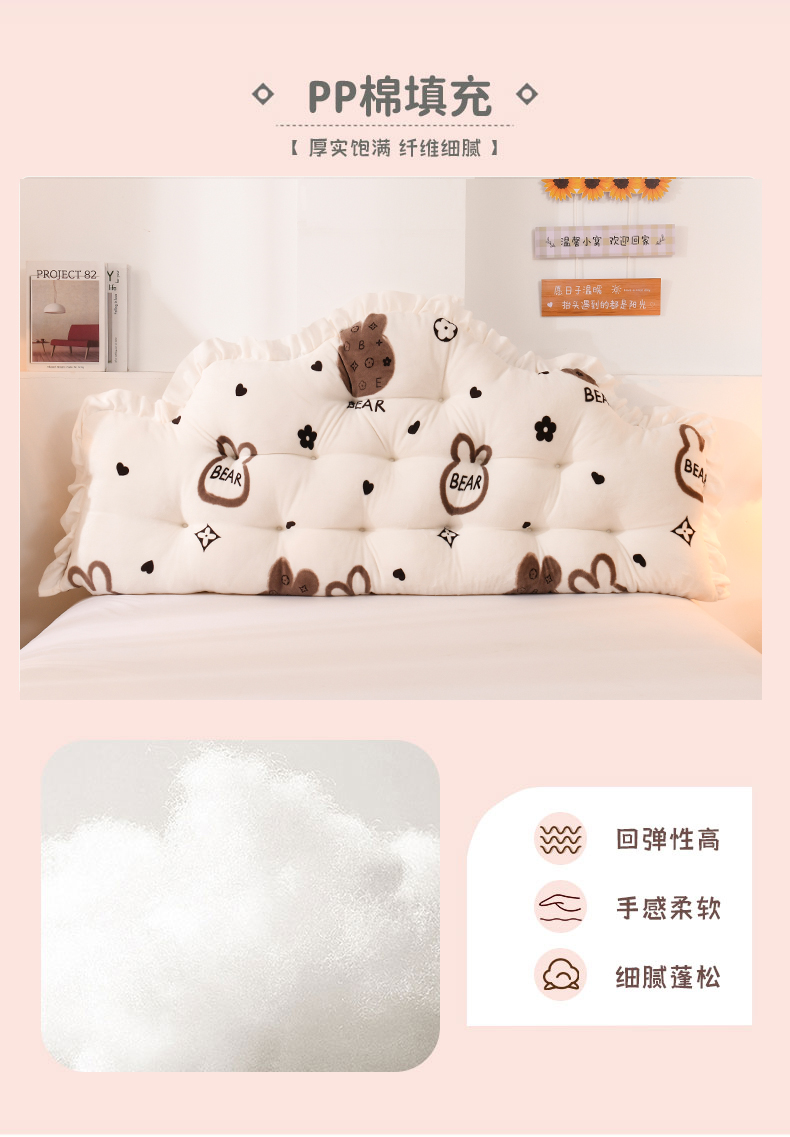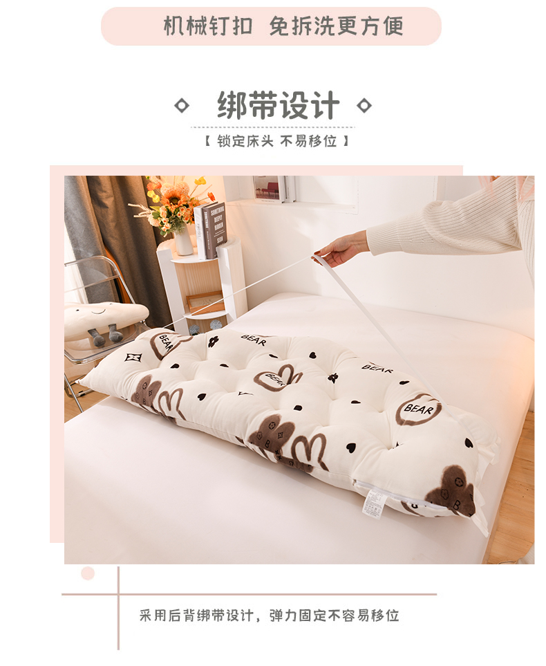 商品名称:碧尔家居 2026新款可爱床上靠枕卧室床头靠背防撞榻榻米软包宿舍靠垫-麦浪机械钉扣牛奶绒 棕色小熊