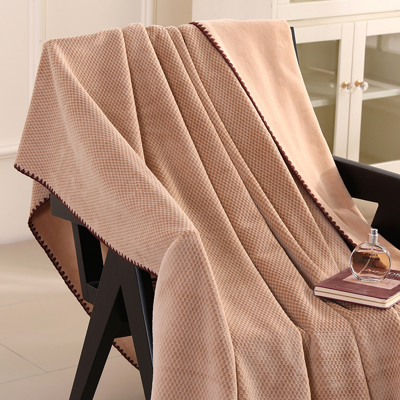 商品名称:芸锦豪 2024新款 锦绒提花&牛奶绒多功能盖毯毛毯 亚麻咖