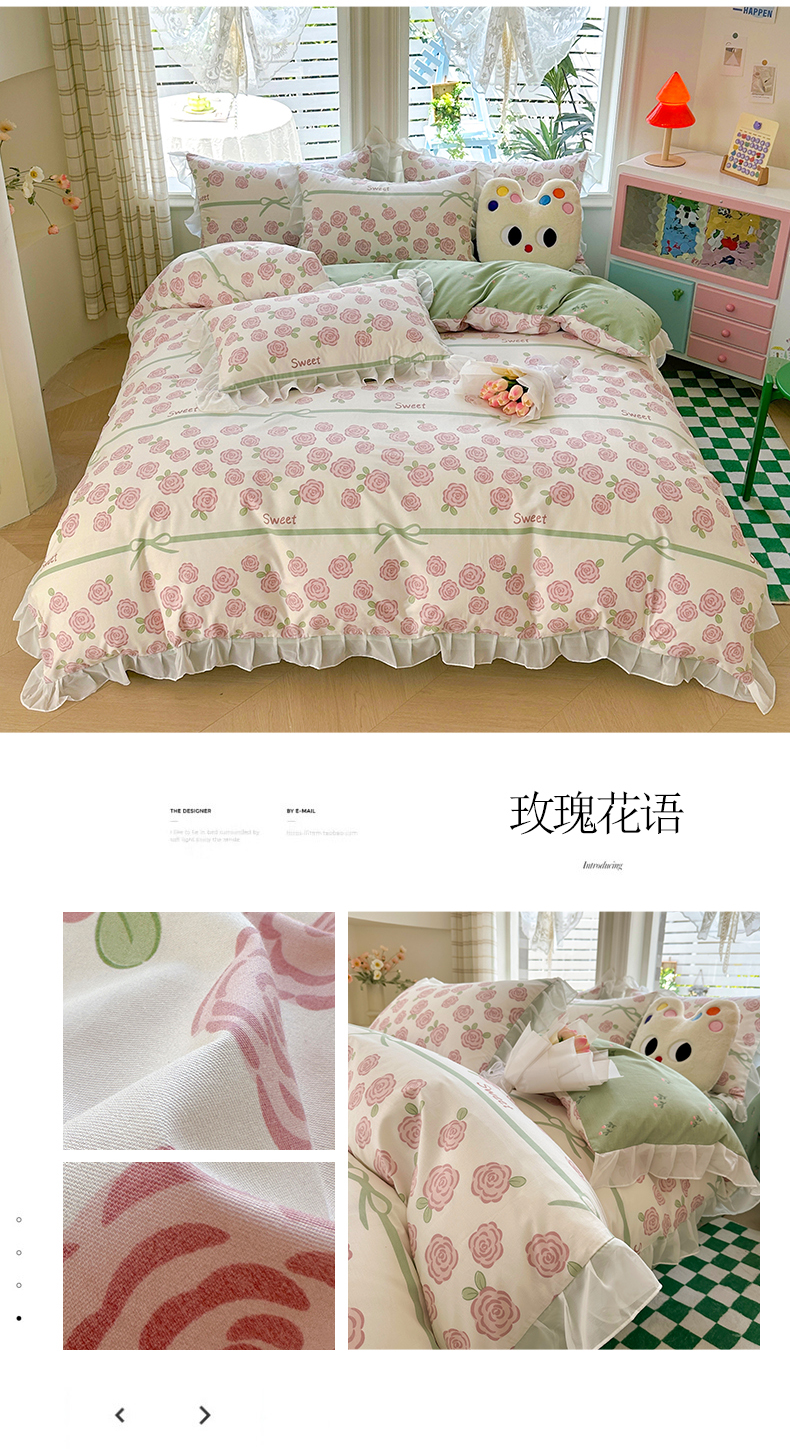 富瑞阁 2024年新款13372全棉雪纺花边花边款四件套 三件套 玫瑰花语